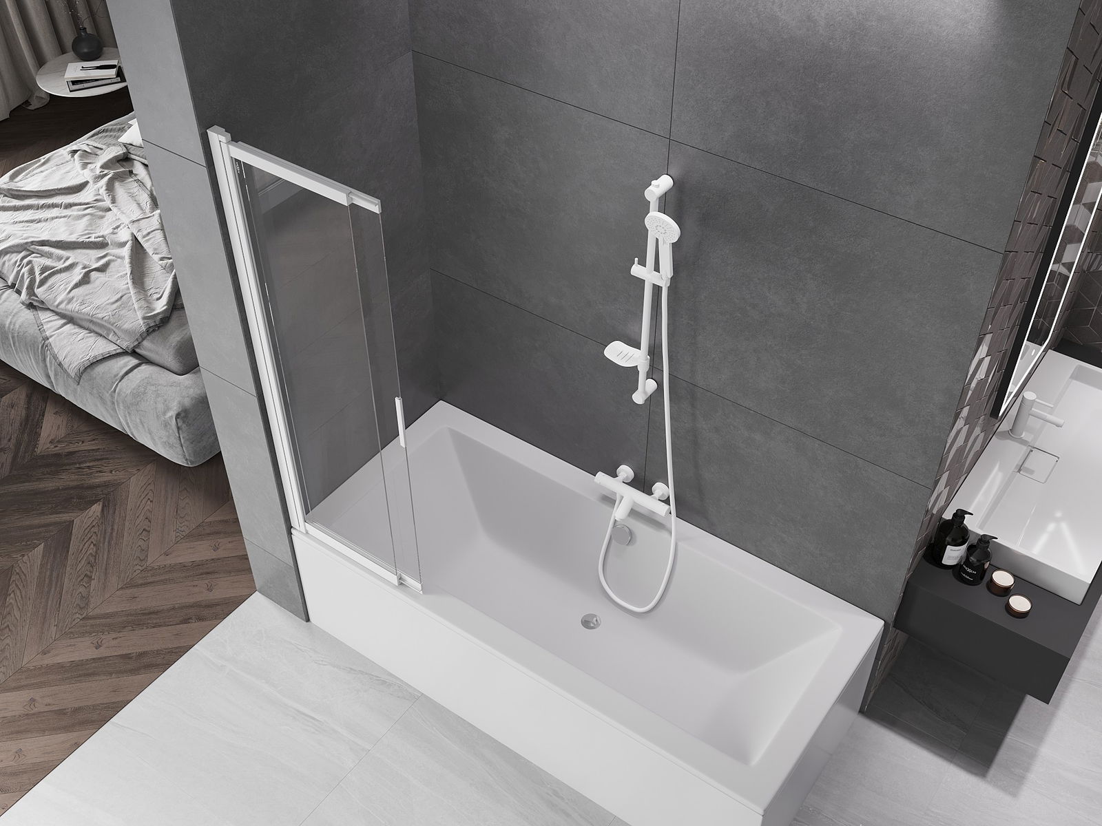 Χάρη στη χρήση του καθολικού συστήματος τοποθέτησης, το παραβάν μπορεί να τοποθετηθεί είτε στη δεξιά είτε στην αριστερή πλευρά, ανάλογα με τις ανάγκες. Με αυτόν τον τρόπο, μπορείς να σχεδιάσεις εύκολα ένα ντους που να ταιριάζει στο χώρο του μπάνιου.