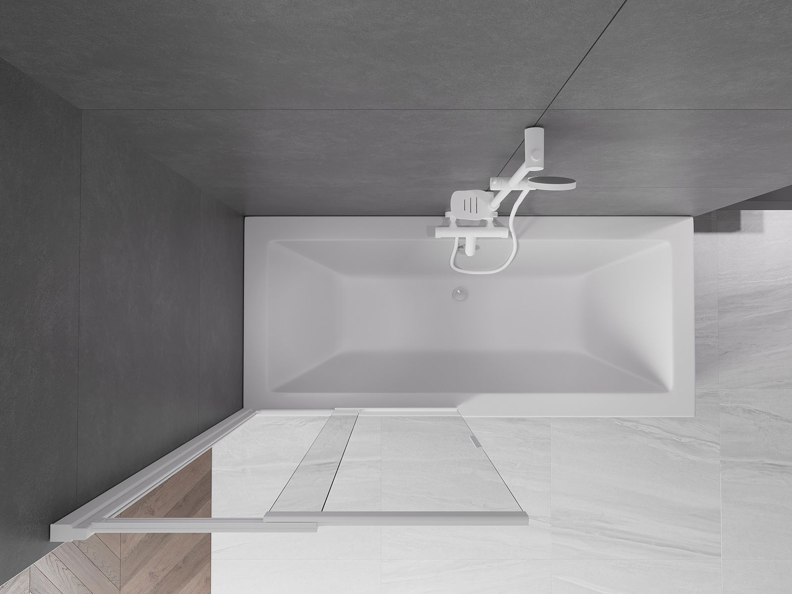Mexen Fox δίφυλλη συρόμενη οθόνη μπανιέρας 85 x 150 εκ., διάφανη, λευκή