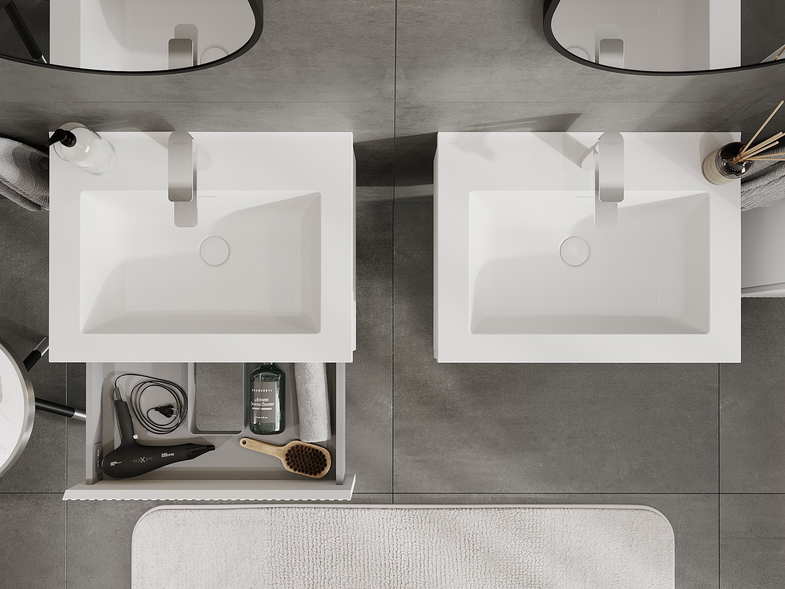 Mexen Rivel ντουλάπι μπάνιου 60 cm με νιπτήρα Otis, 1 συρτάρι, με ραβδώσεις,