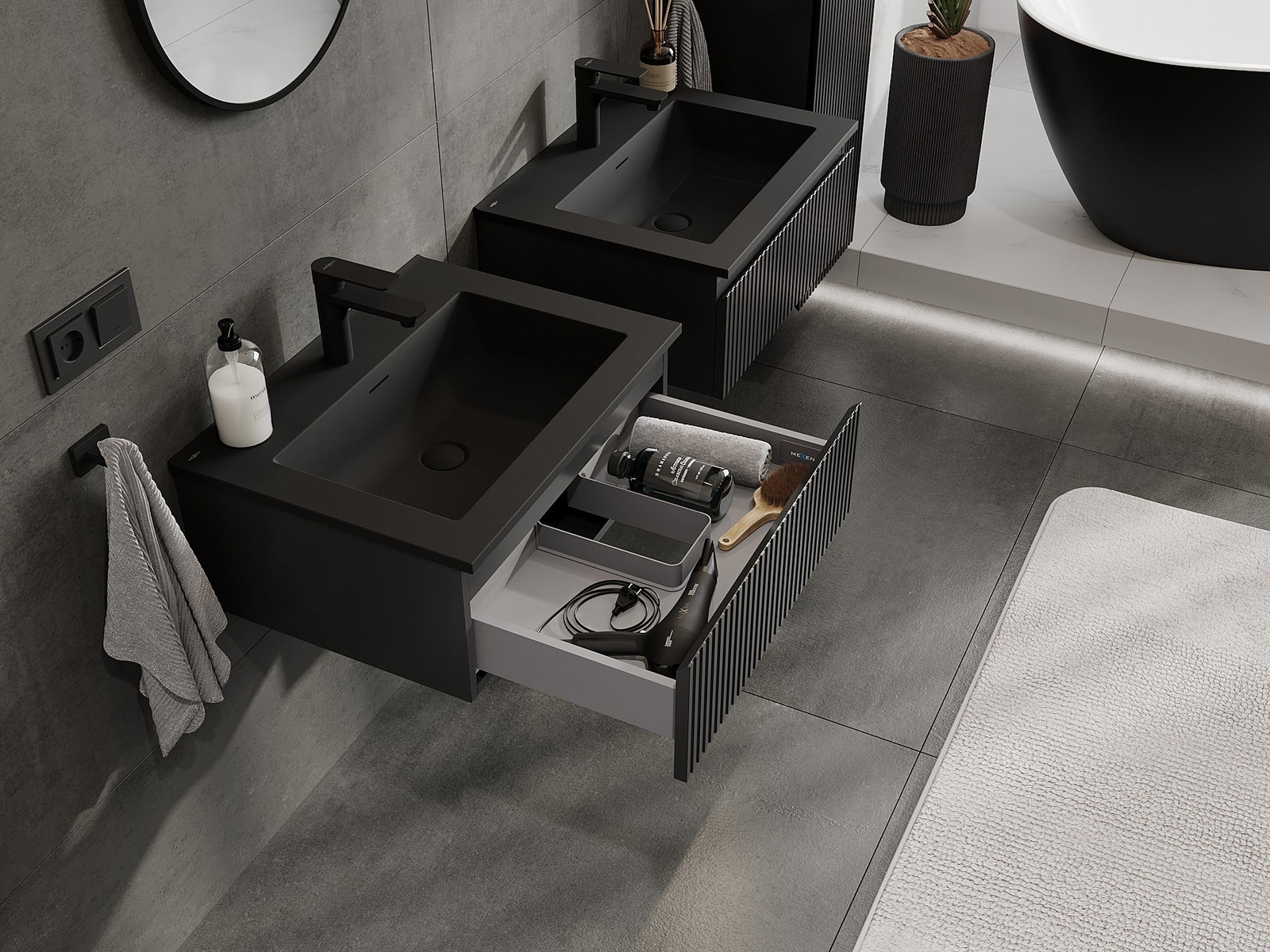 Mexen Rivel ντουλάπι μπάνιου 60 cm με νιπτήρα Otis, 1 συρτάρι, αυλακωτό, μαύρο