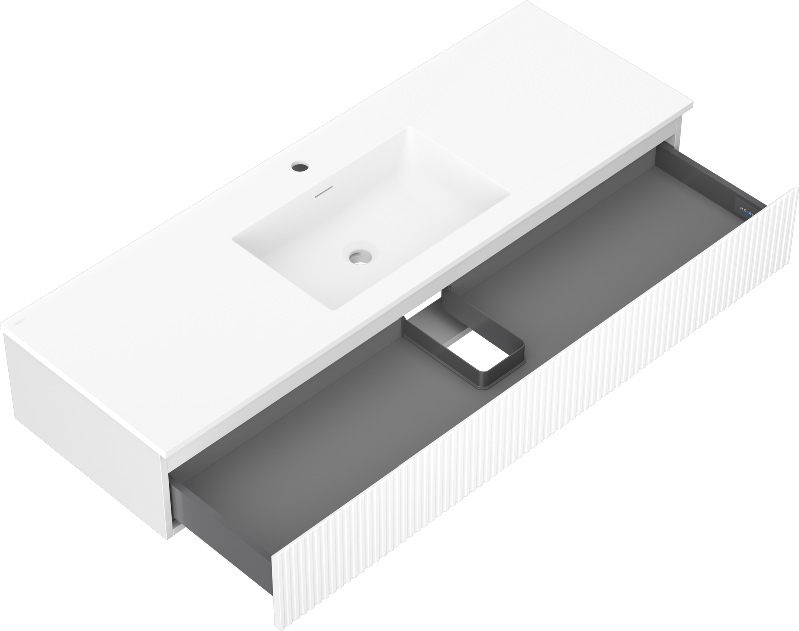 Mexen Rivel ντουλάπι μπάνιου 140 cm με νιπτήρα Otis, 1 συρτάρι, αυλακωτό, λευκό
