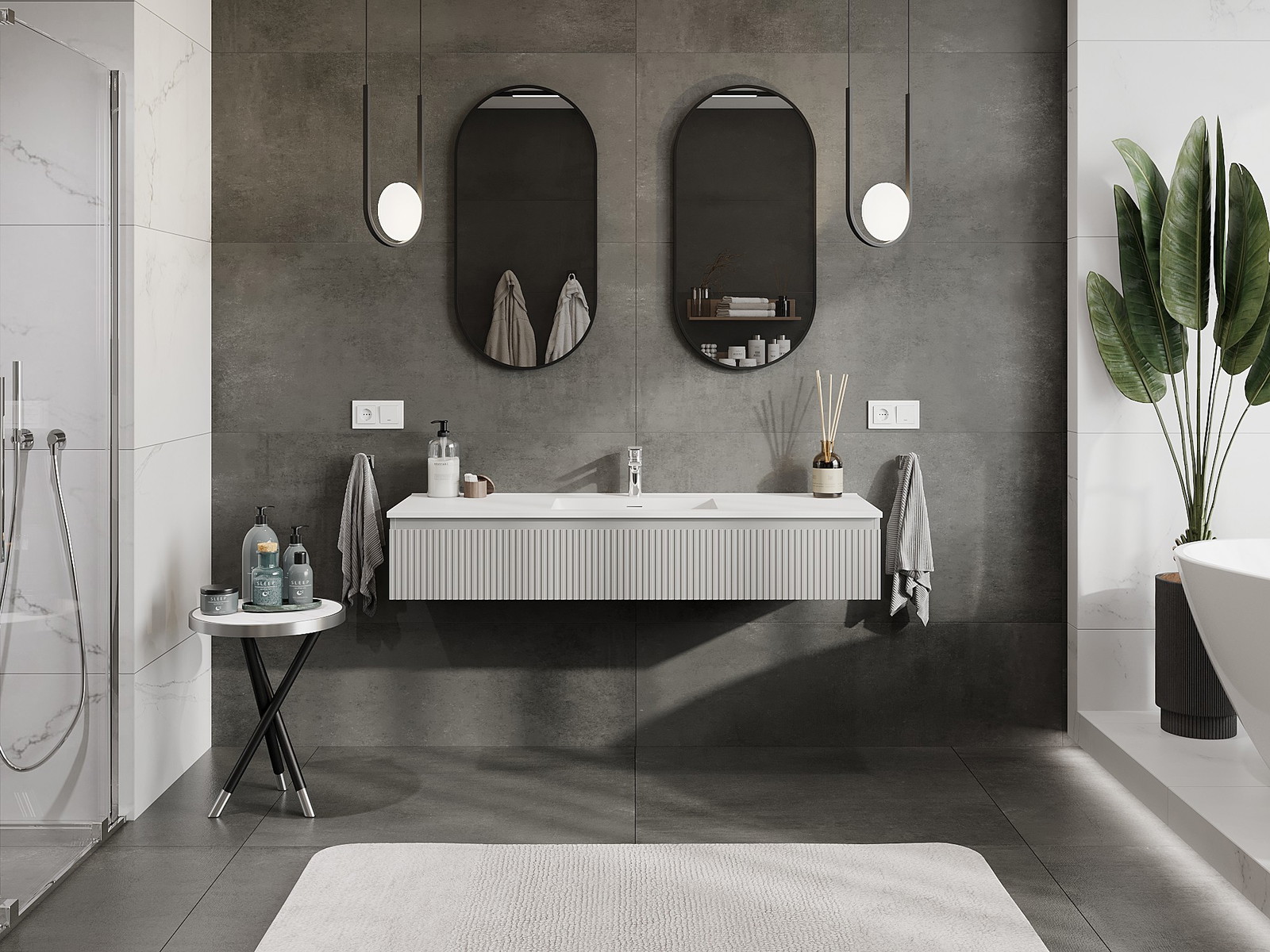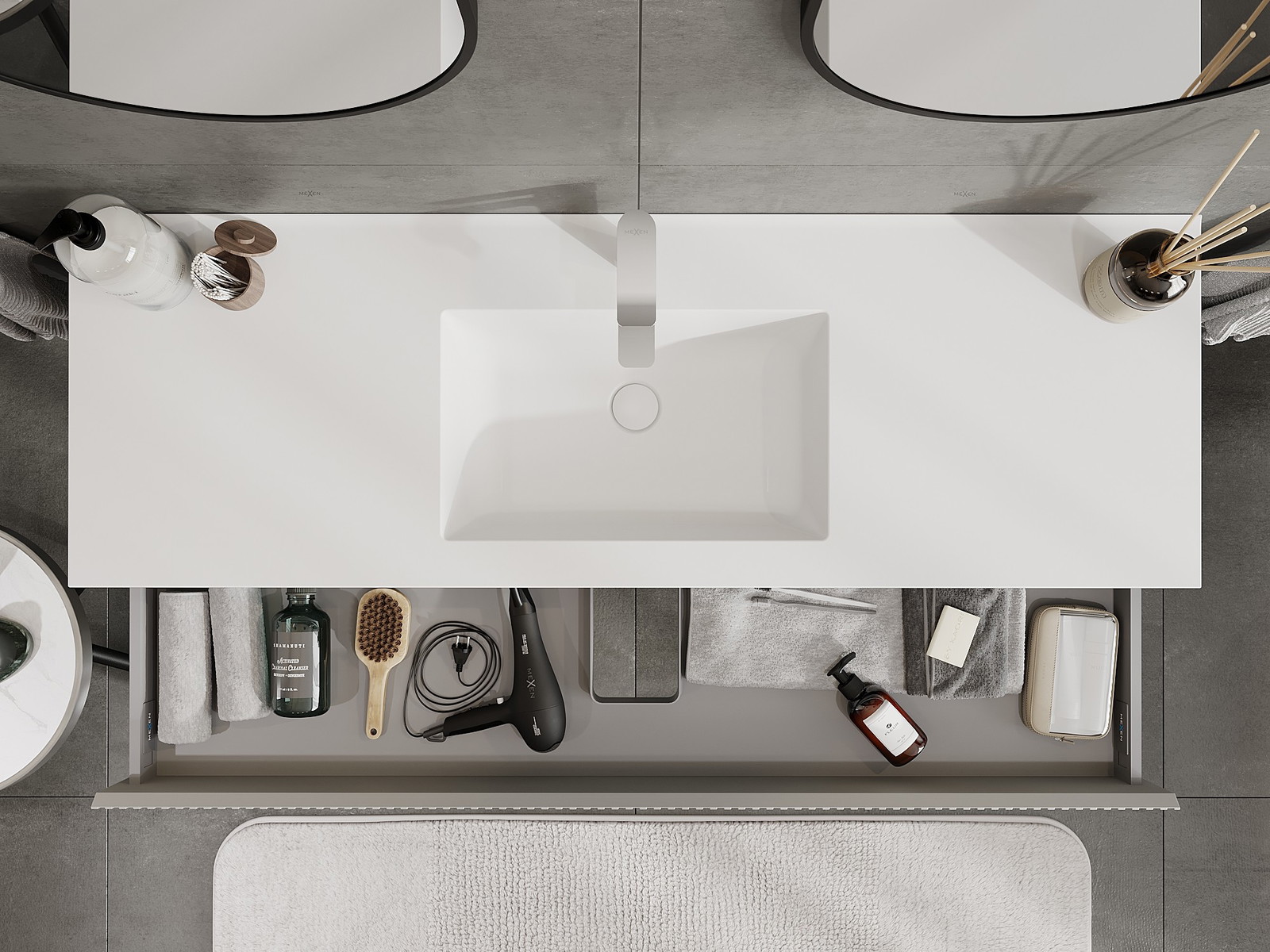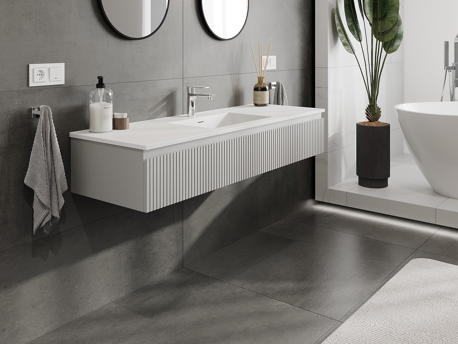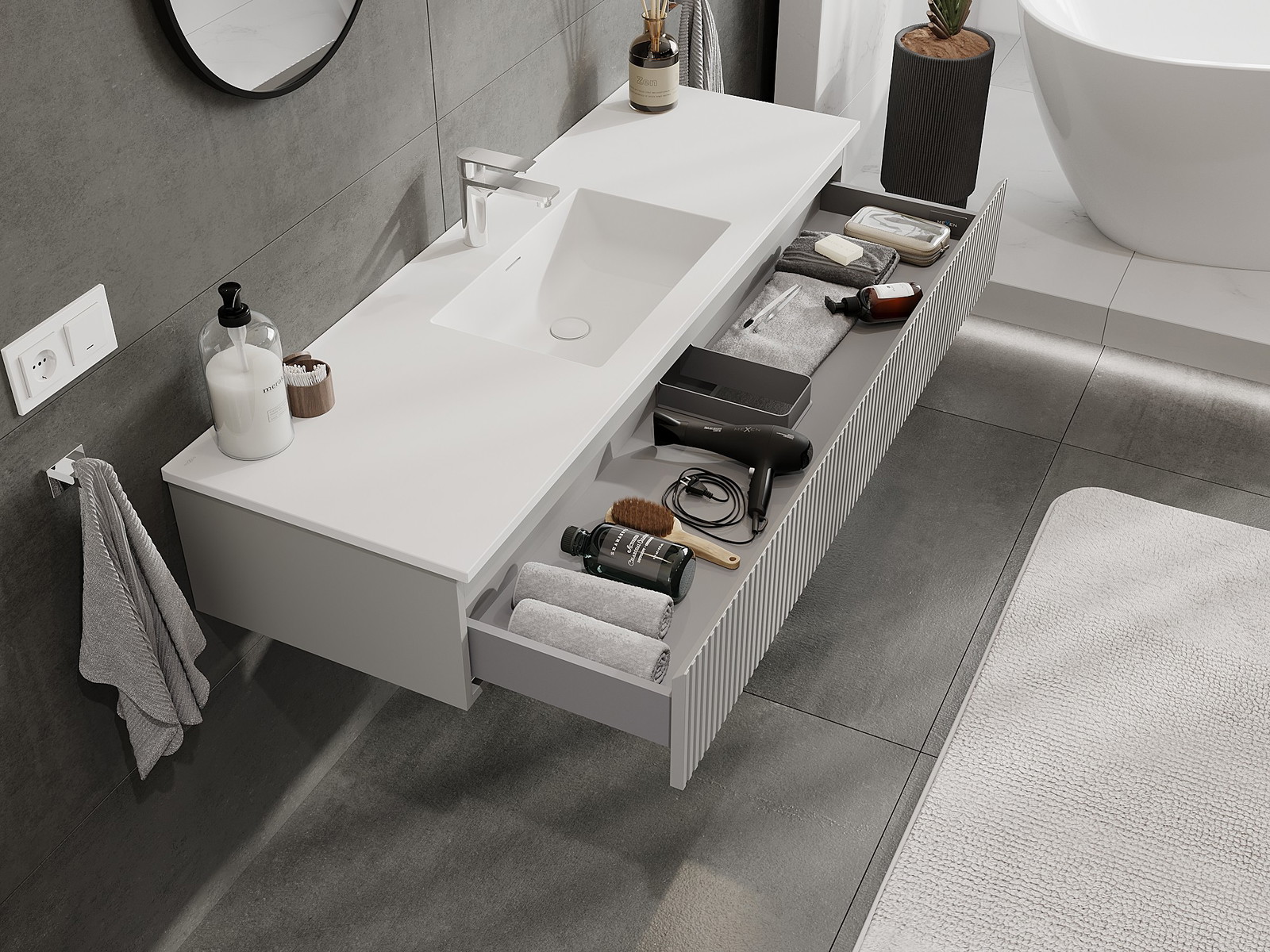 Mexen Rivel ντουλάπι μπάνιου 140 cm με νιπτήρα Otis, 1 συρτάρι, αυλακωτό, γκρι