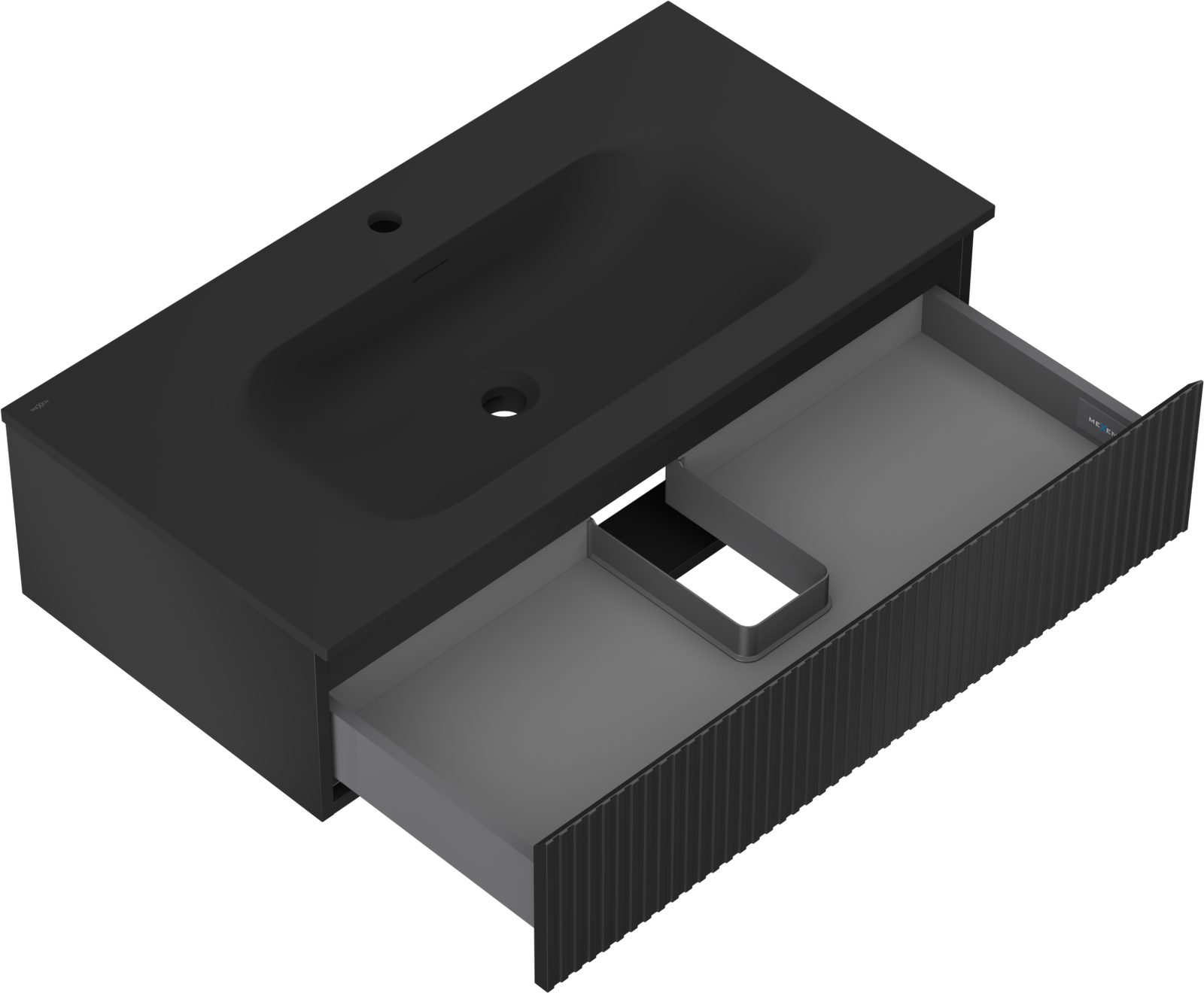 Mexen Rivel ντουλάπι μπάνιου 90 cm με νιπτήρα Vela, 1 συρτάρι, με αυλάκια, μαύρο