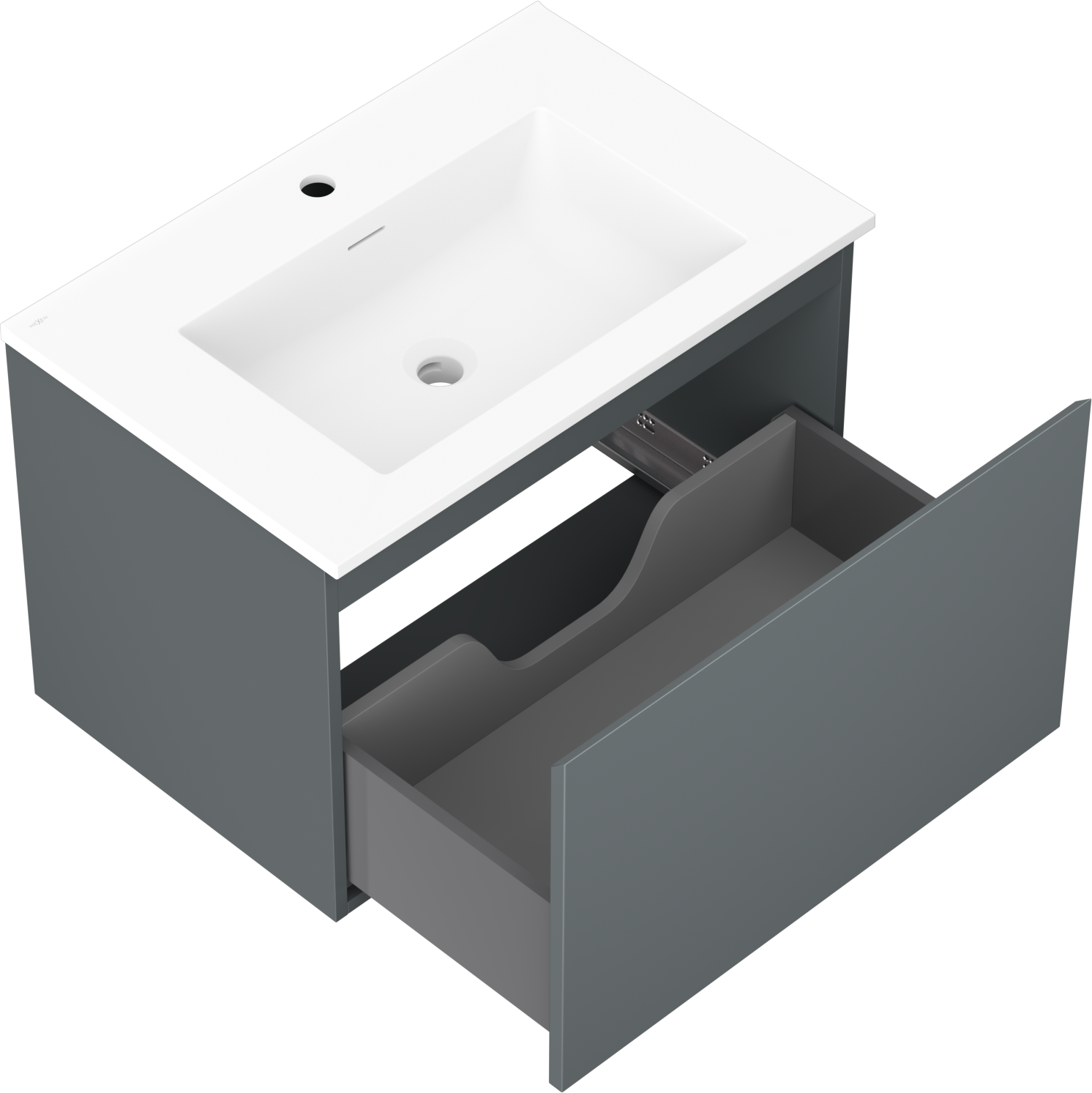 Η εγκοπή στο συρτάρι είναι σχεδιασμένη με τέτοιο τρόπο, ώστε να φιλοξενεί το σιφόνι, το οποίο είναι απαραίτητο στις εγκαταστάσεις νιπτήρων. Έτσι, το έπιπλο μπορεί να εγκατασταθεί πλήρως λειτουργικά, χωρίς την ανάγκη παραίτησης από χώρο στο συρτάρι υπέρ της εγκατάστασης.