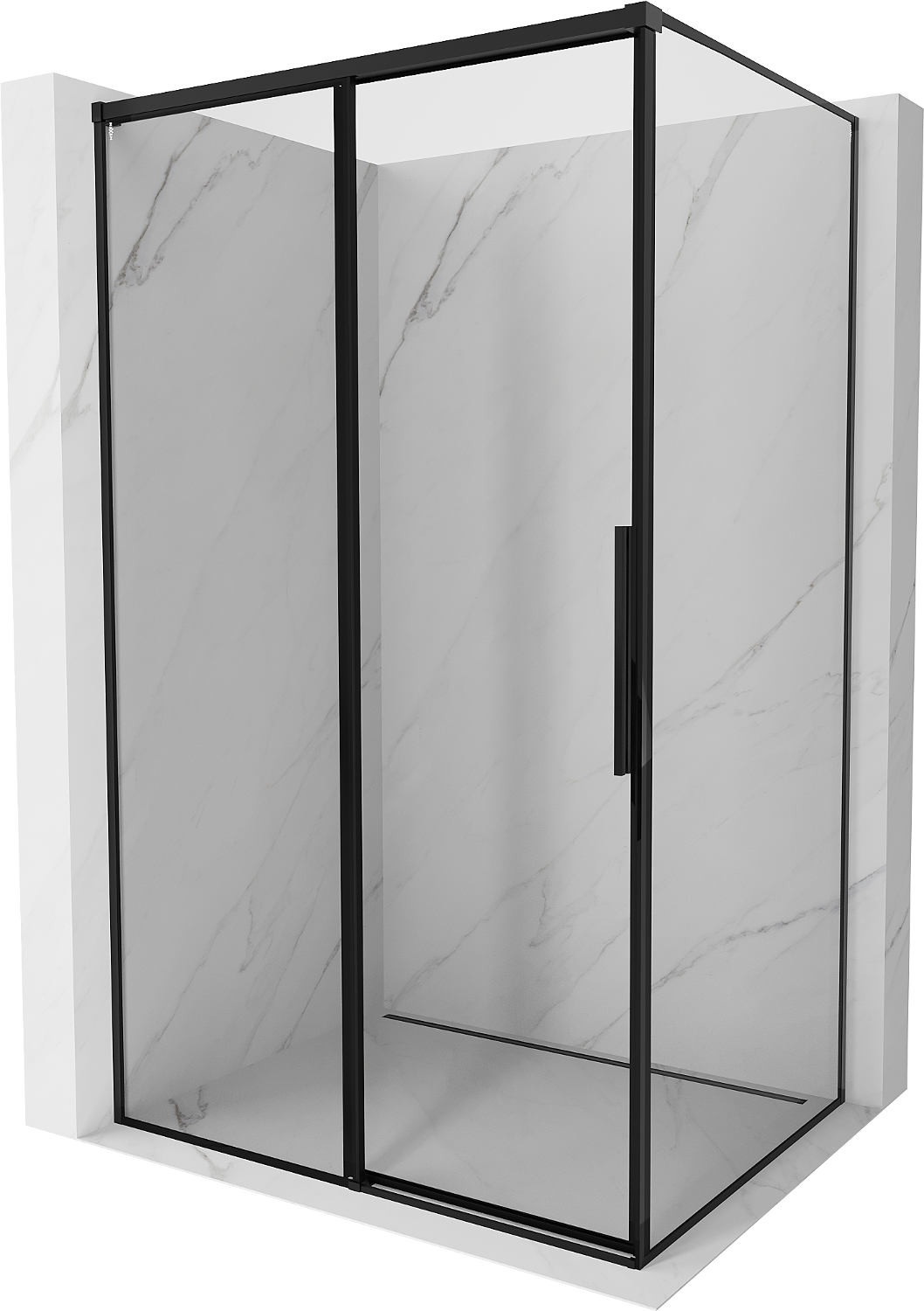 Mexen Rox καμπίνα ντους συρόμενη αριστερή 150 x 110 cm, μαύρο πλαίσιο, μαύρη