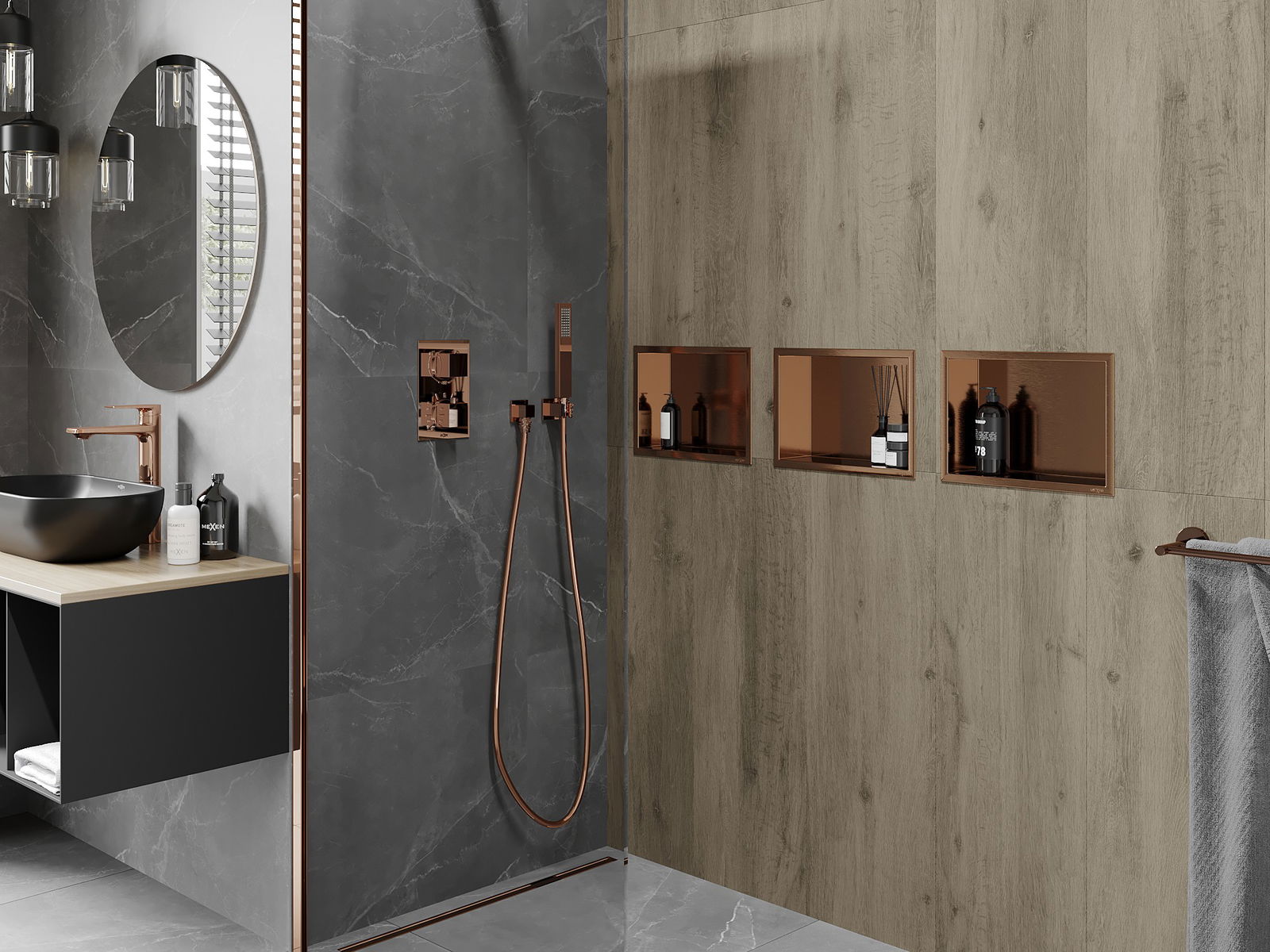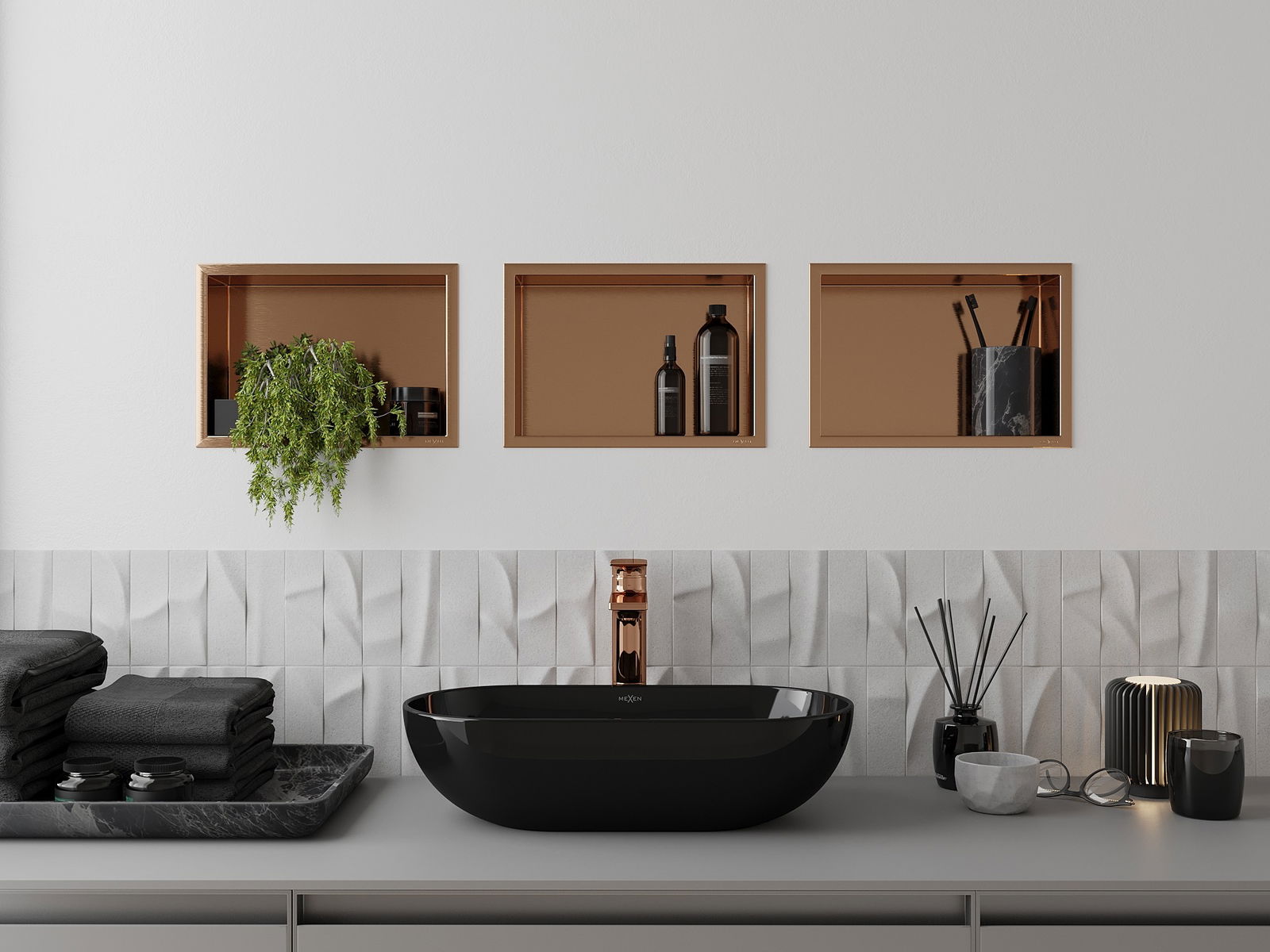 Mexen X-Wall-R ράφι υποδοχής με φλάντζα 30 x 20 cm, βουρτσισμένος χαλκός - 19C0302010