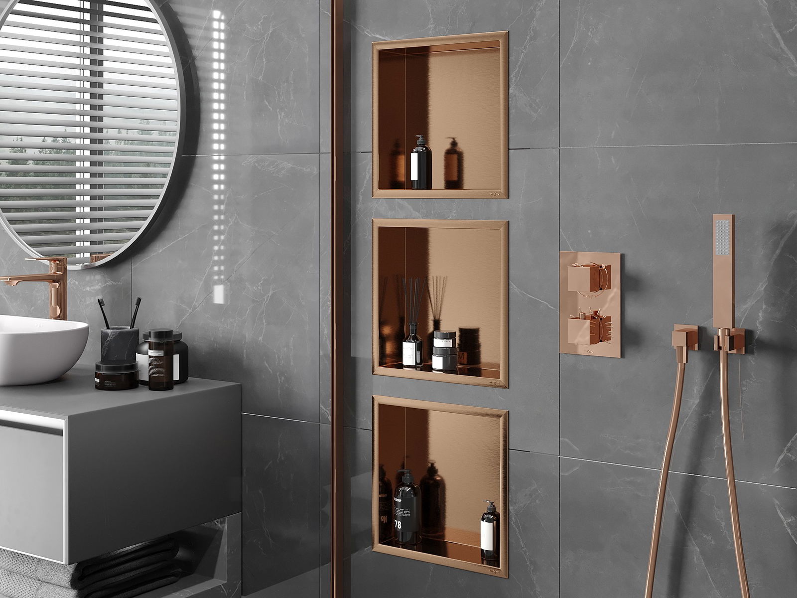 Mexen X-Wall-R ράφι εσοχής με φλάντζα 30 x 30 cm, βουρτσισμένος χαλκός - 19C0303010