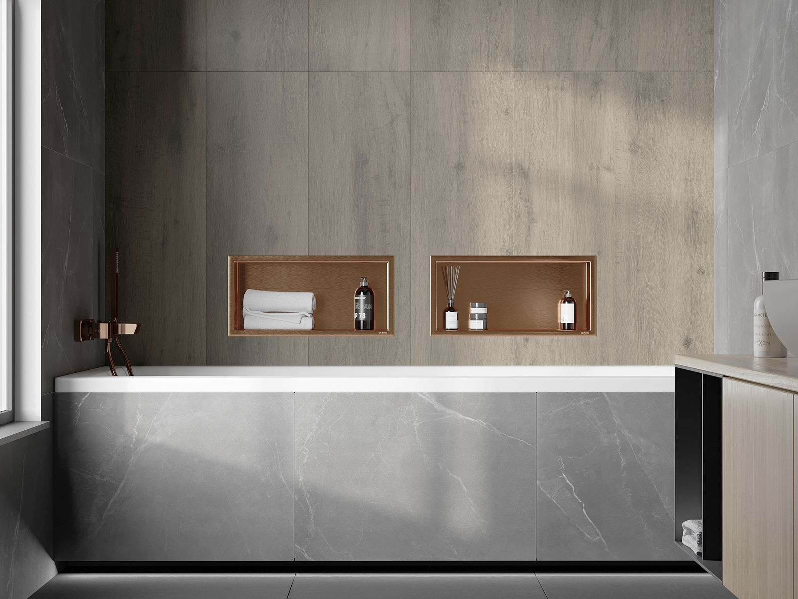 Δυνατότητα εγκατάστασης στον τοίχο ή σε ειδικά προετοιμασμένη κατασκευή. Είναι μια εξαιρετικά σύγχρονη και λειτουργική λύση που επιτρέπει την εξοικονόμηση χώρου και την προσαρμογή του προϊόντος στην αισθητική του εσωτερικού και τη δημιουργία μιας ενοποιημένης σύνθεσης.