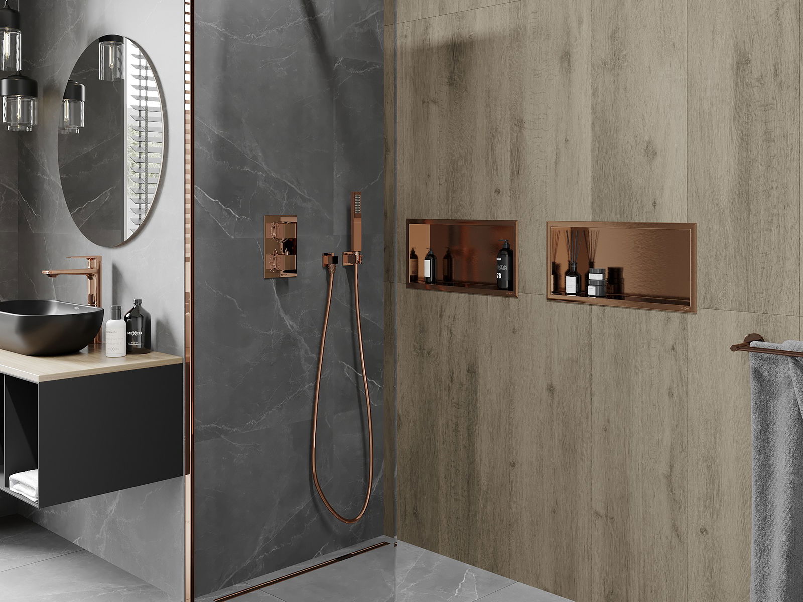 Mexen X-Wall-R Ράφι υπό κάλυκα με περιλαίμιο 45 x 20 cm, βουρτσισμένο χαλκό