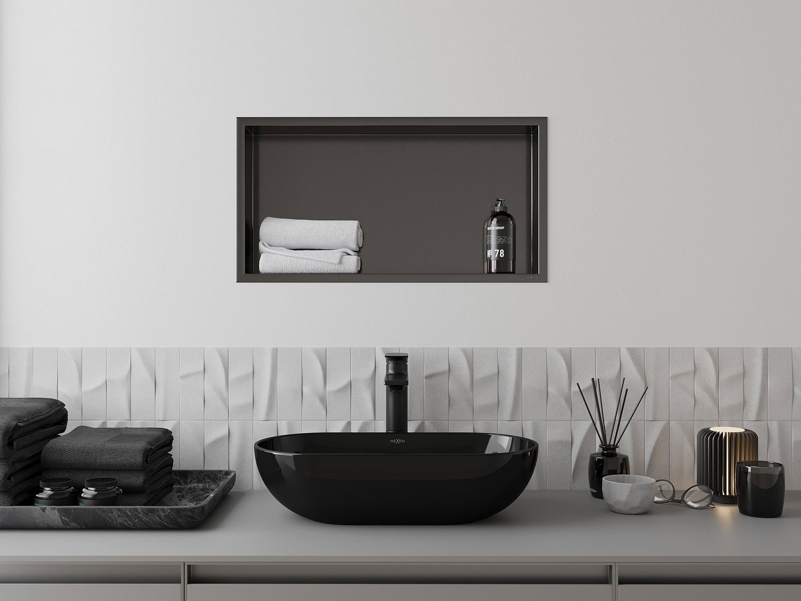 Mexen X-Wall-R Εσοχή ράφι με περιλαίμιο 60 x 30 cm, βουρτσισμένο γκρι κανόνι