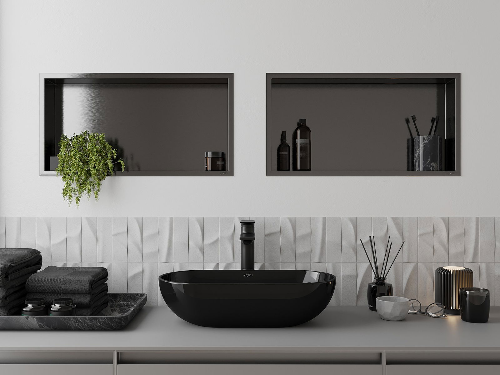 Δυνατότητα εγκατάστασης στον τοίχο ή σε ειδικά προετοιμασμένη κατασκευή. Είναι μια εξαιρετικά σύγχρονη και λειτουργική λύση που επιτρέπει την εξοικονόμηση χώρου και την προσαρμογή του προϊόντος στην αισθητική του εσωτερικού και τη δημιουργία μιας ενοποιημένης σύνθεσης.