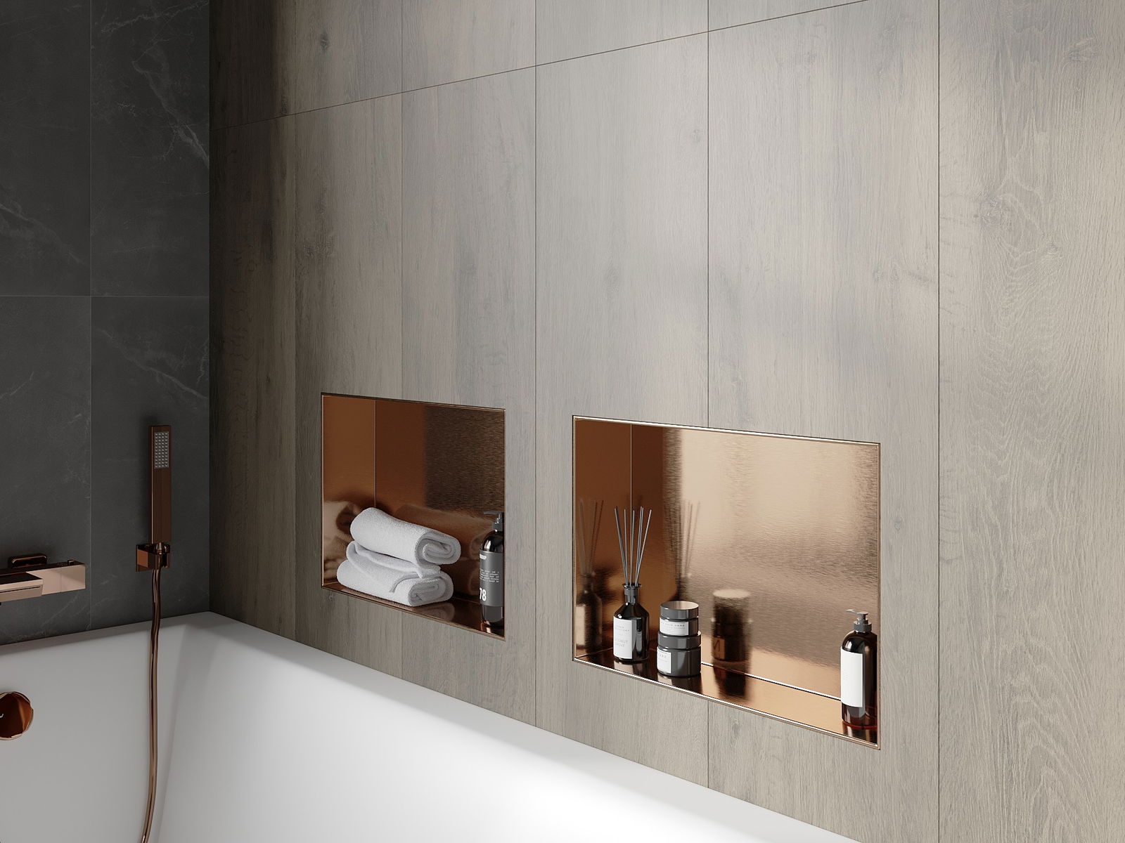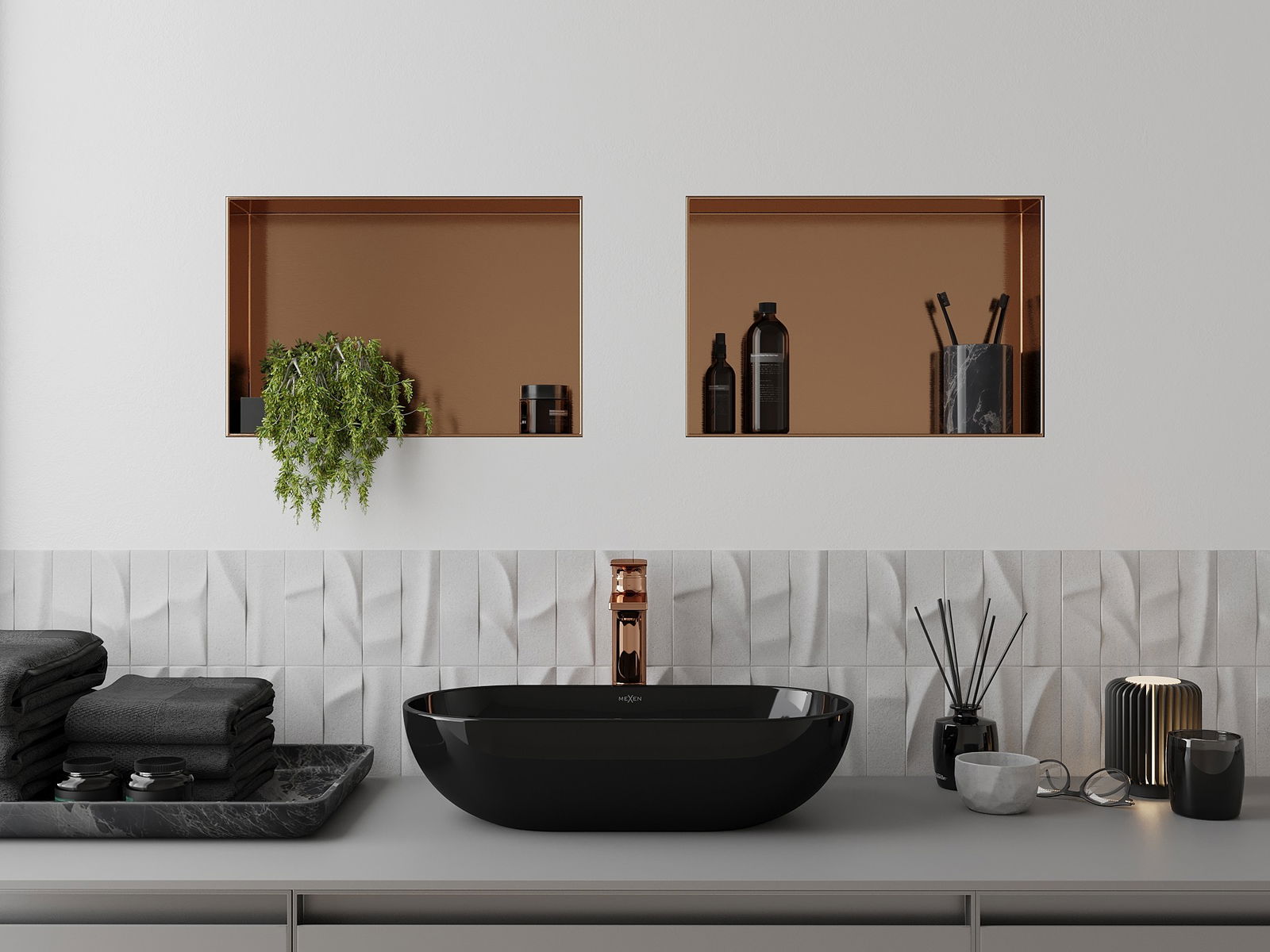 Mexen X-Wall-NR Εσοχή ράφι χωρίς πλαίσιο 45 x 30 cm, βουρτσισμένος χαλκός - 19C1453010