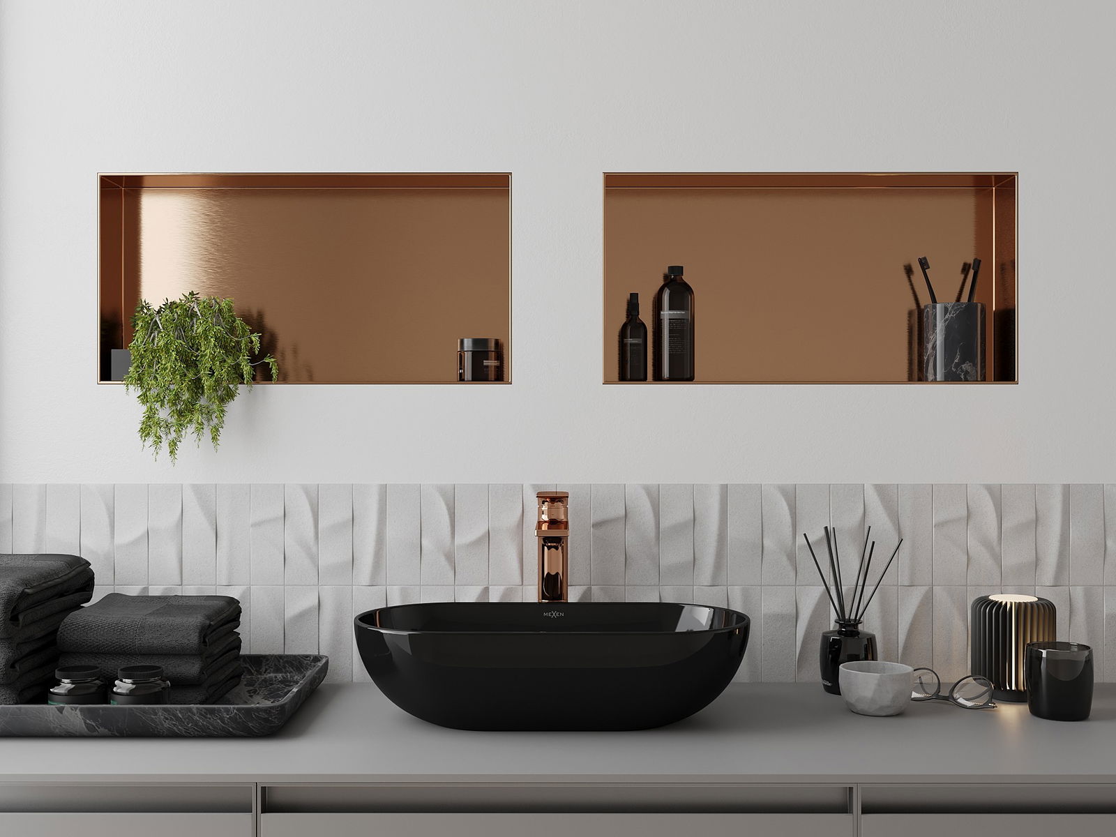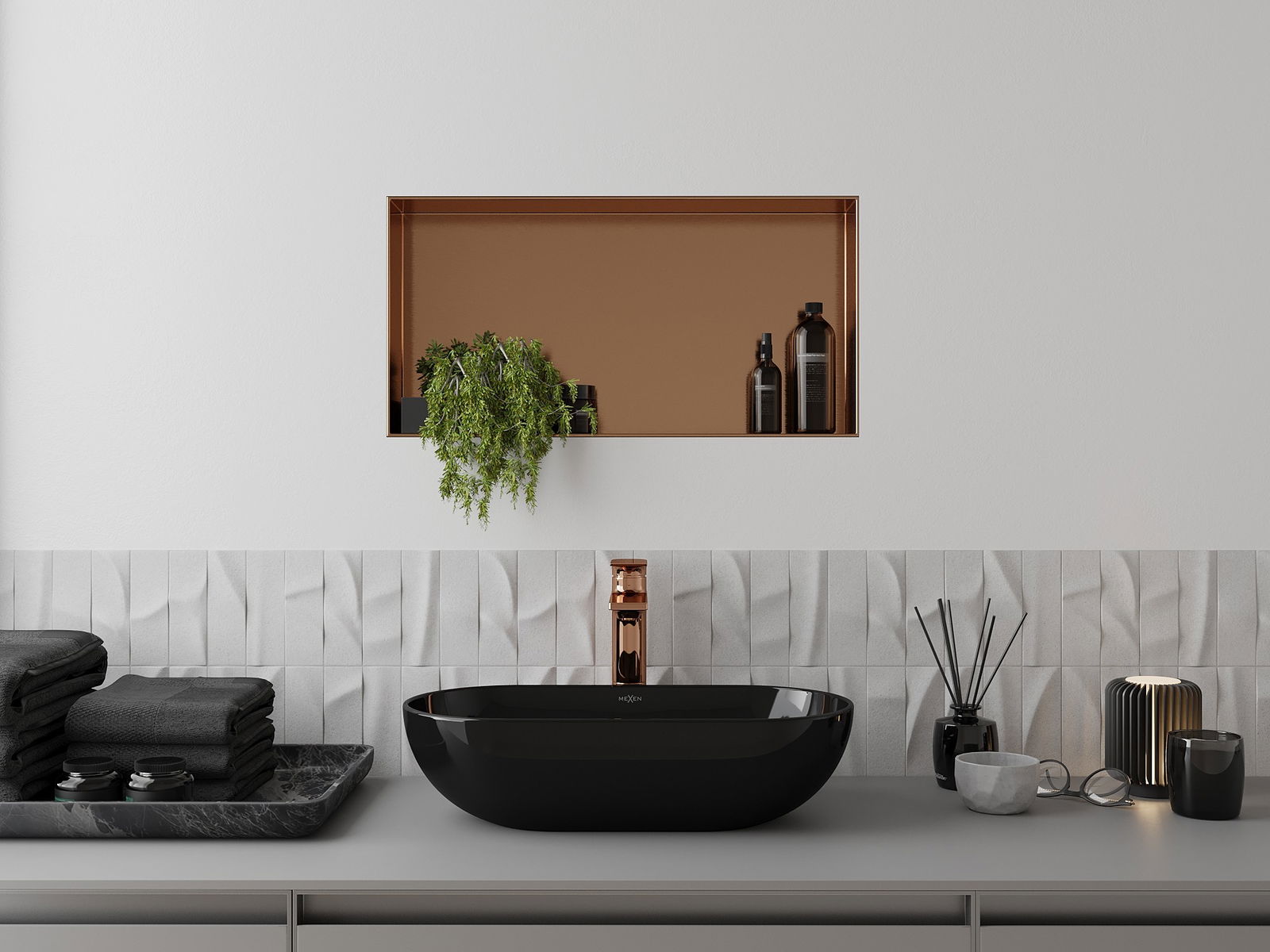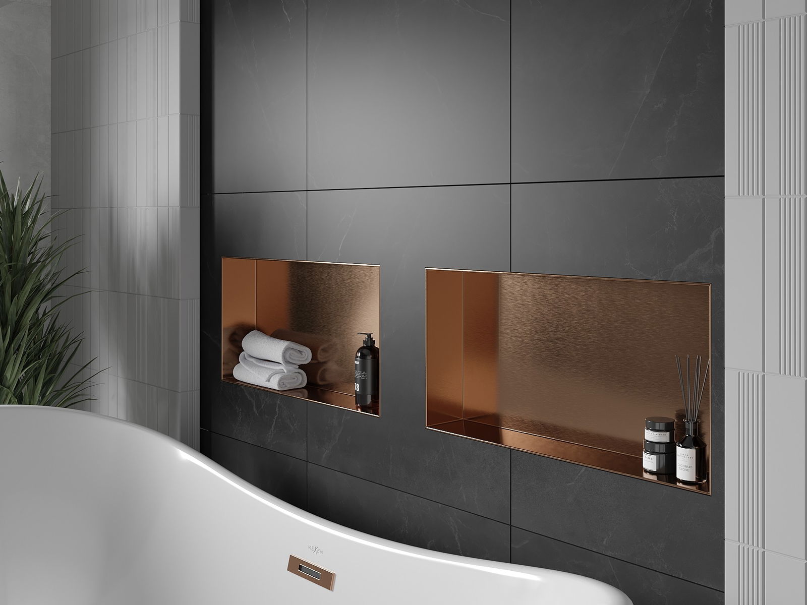 Mexen X-Wall-NR εντοιχισμένο ράφι χωρίς περίβλημα 60 x 30 cm, βουρτσισμένο χαλκό