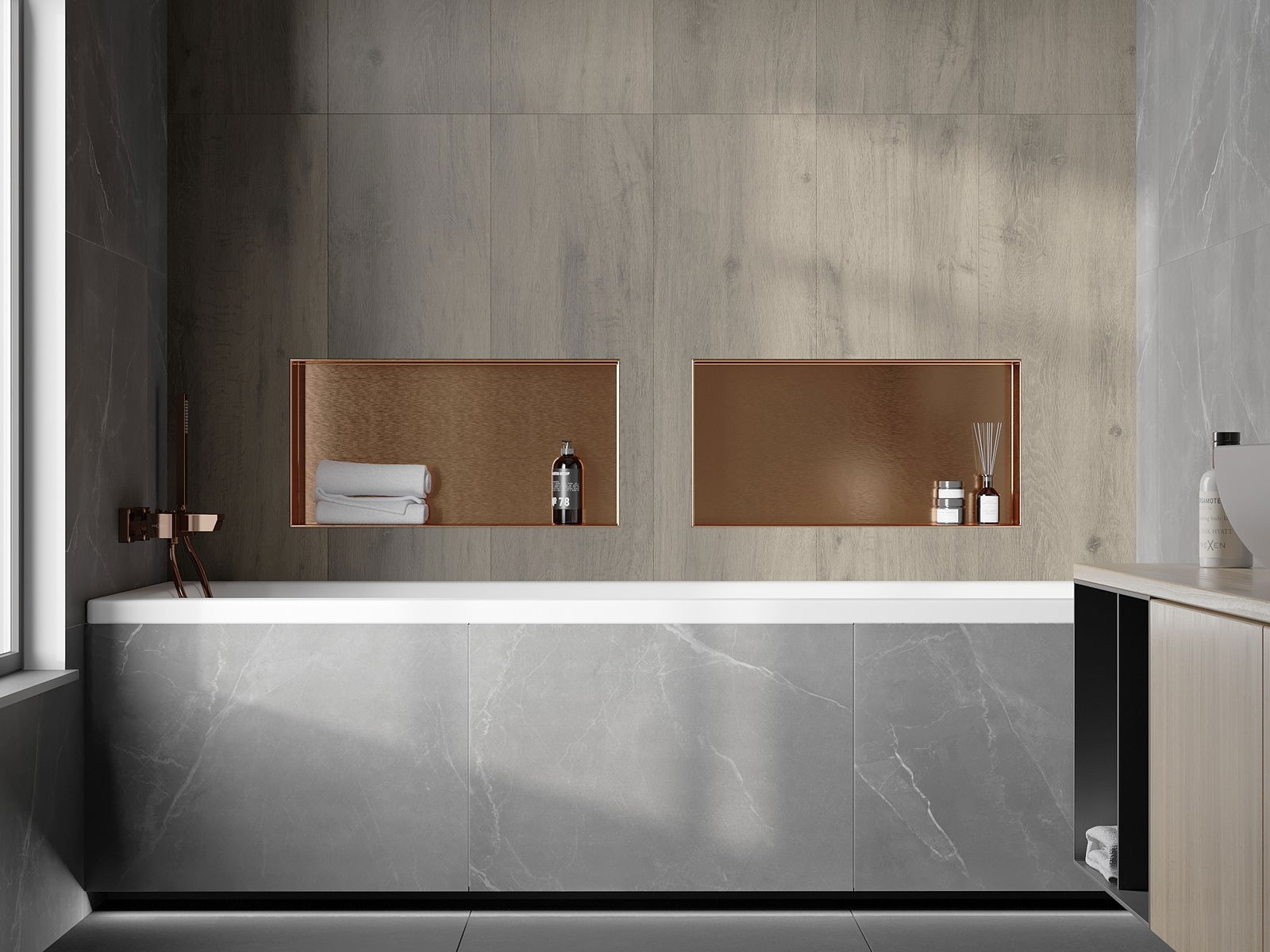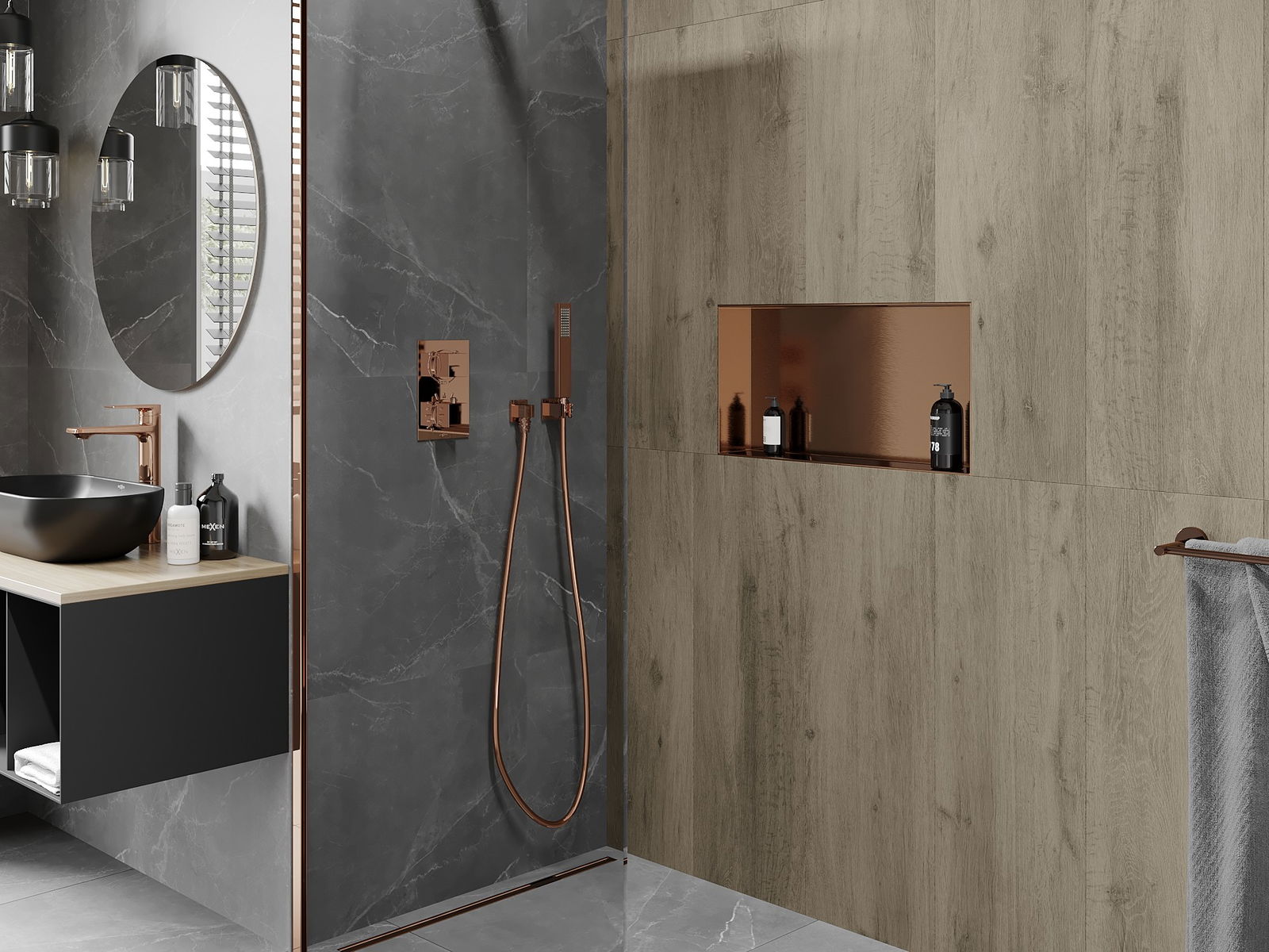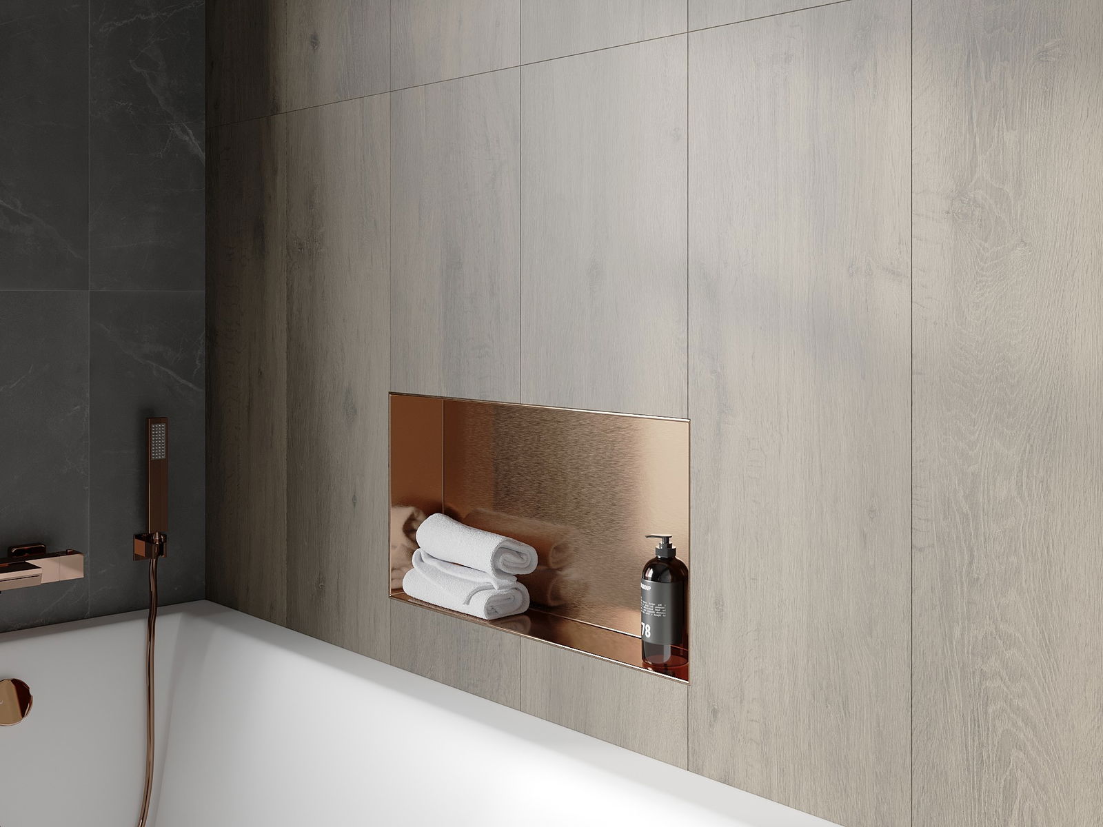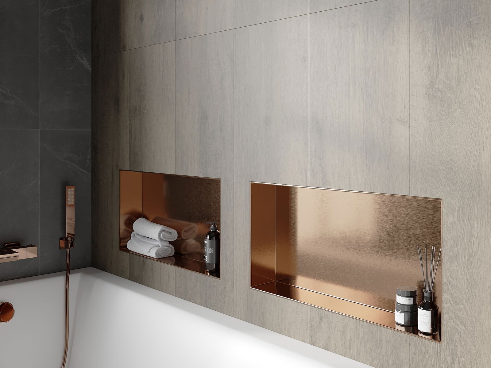 Mexen X-Wall-NR εντοιχισμένο ράφι χωρίς περίβλημα 60 x 30 cm, βουρτσισμένο χαλκό