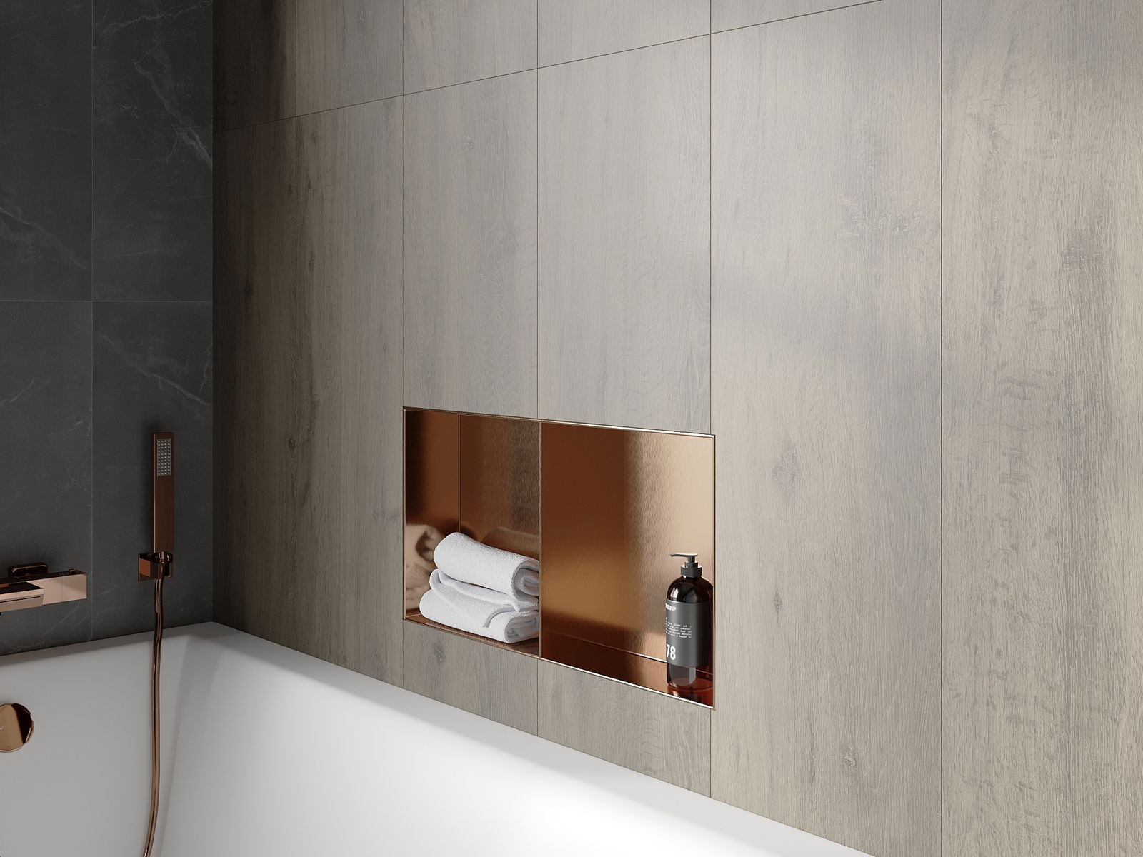 Mexen X-Wall-NR εντοιχισμένο ράφι χωρίς φλάντζα με ράφι 60 x 30 cm, βουρτσισμένο