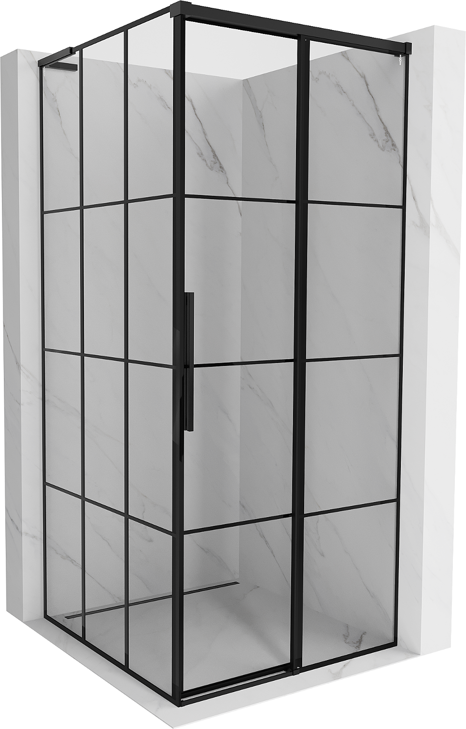 Mexen Rox L δεξιά συρόμενη καμπίνα ντους 100 x 100 cm, μαύρο καρό, μαύρη