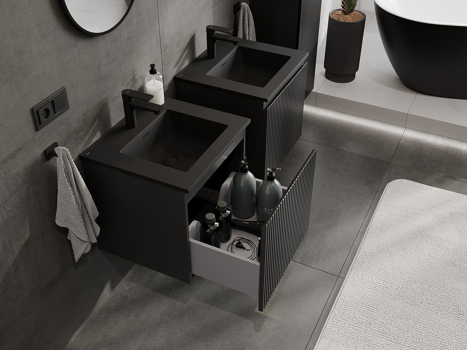 Mexen Rivel ντουλάπι μπάνιου 50 cm με νιπτήρα Otis, 1 συρτάρι, ραβδωτό, μαύρο ματ