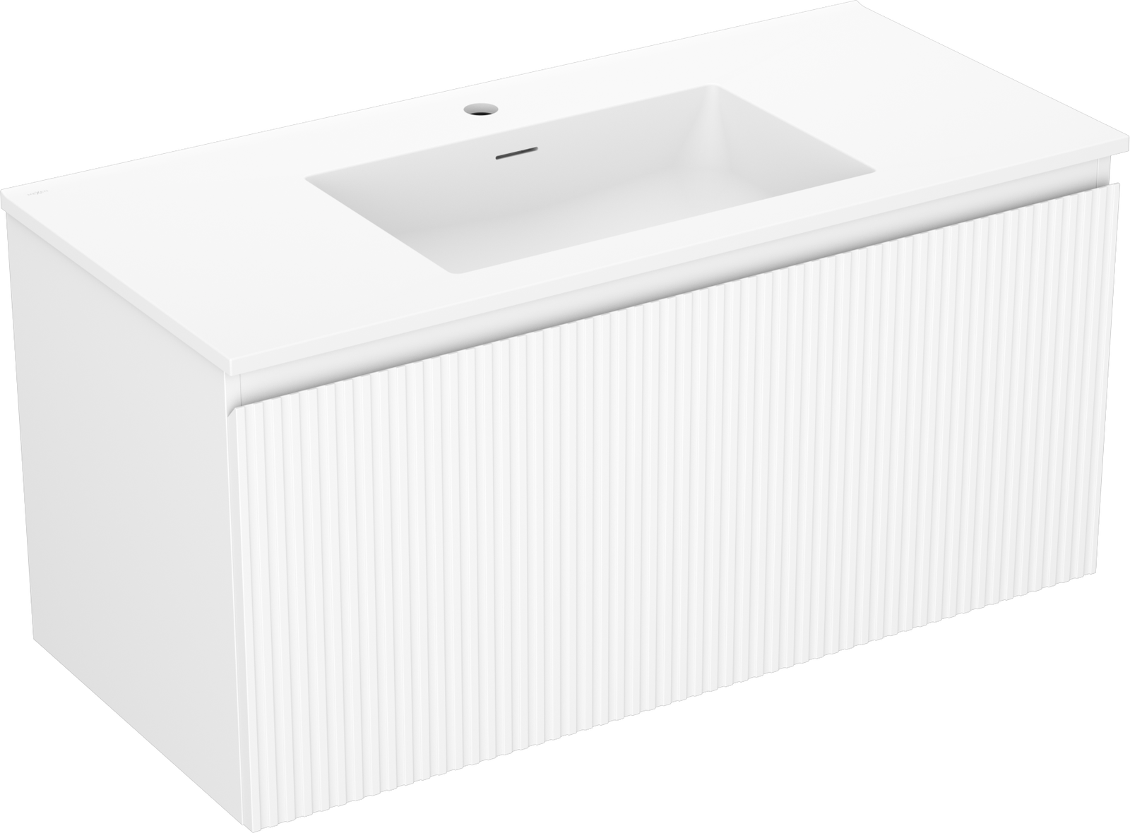 Mexen Rivel ντουλάπι μπάνιου 100 cm με νιπτήρα Otis, 1 συρτάρι, ριγέ, λευκό ματ