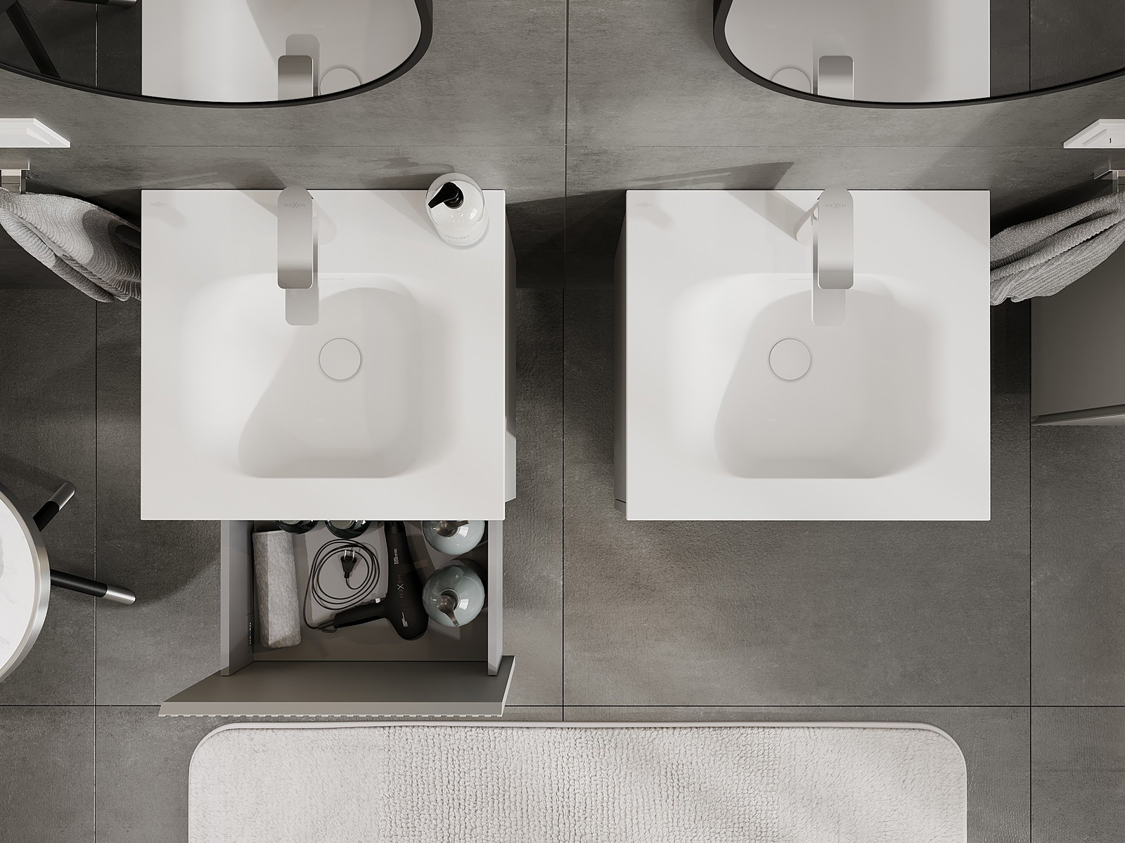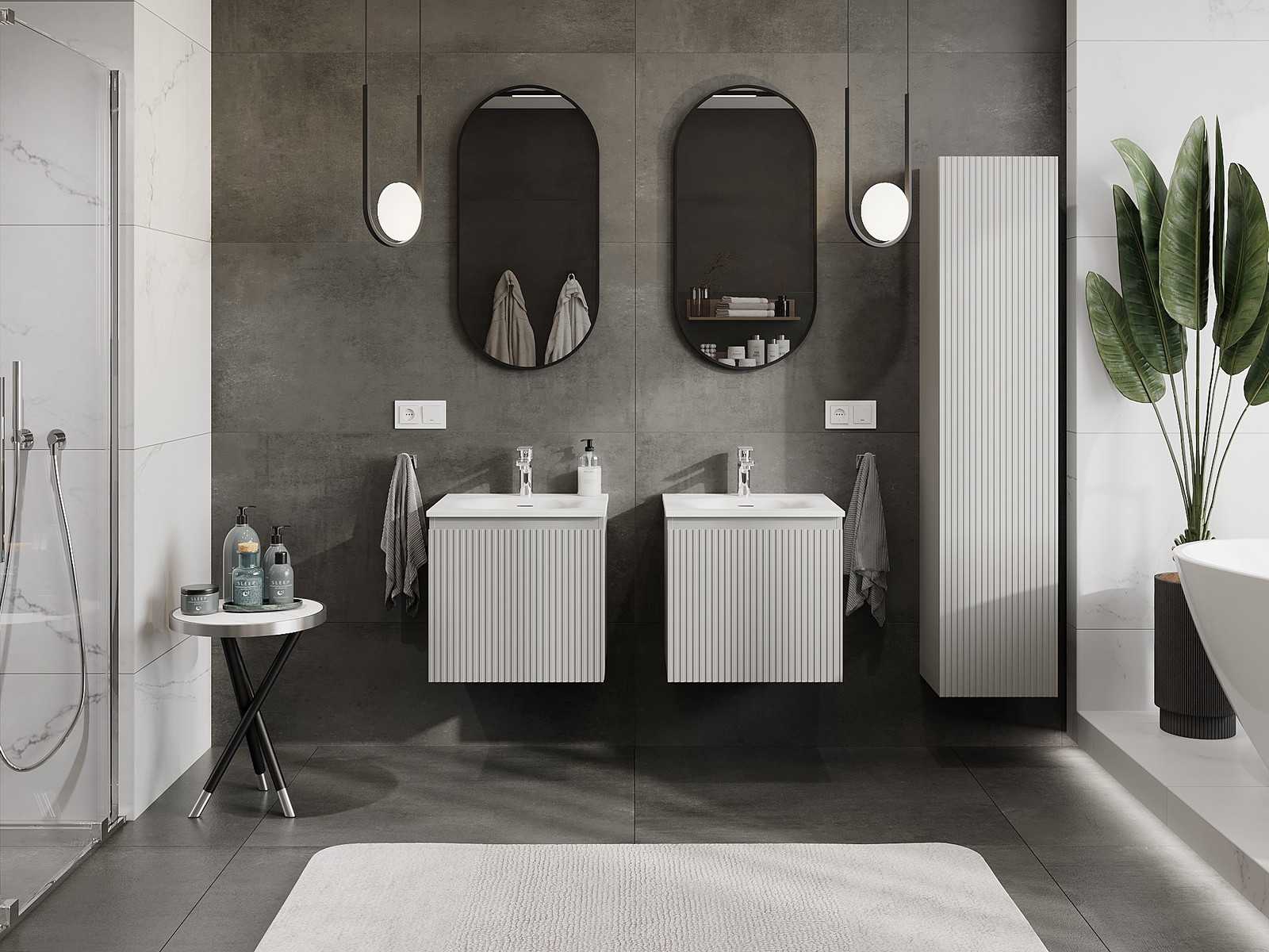 Τα αρθρωτά έπιπλα μπάνιου μας μπορούν να συνδυαστούν μεταξύ τους σε διάφορες χρωματικές διαμορφώσεις, επιτρέποντας πλήρη εξατομίκευση. Μπορείτε να επιλέξετε τόσο την εμφάνιση όσο και τις λειτουργίες των επιμέρους στοιχείων, ώστε να προσαρμόσετε τα έπιπλα στις δικές σας στιλιστικές και λειτουργικές προτιμήσεις.