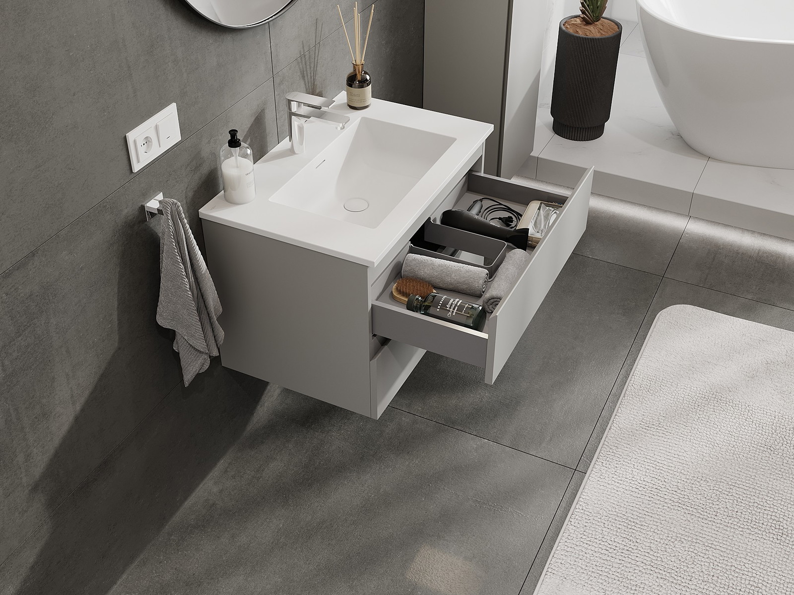 Mexen Orio ντουλάπι μπάνιου 70 cm με νιπτήρα Otis, 2 συρτάρια, γκρι ματ/λευκό ματ