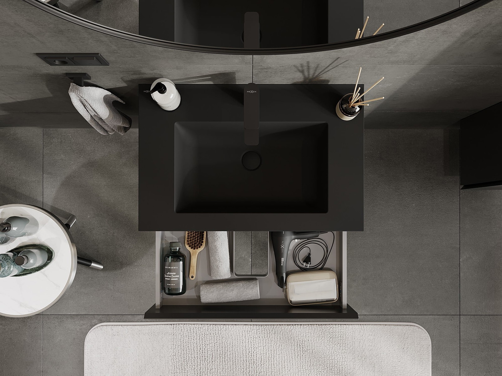 Mexen Orio ντουλάπι μπάνιου 70 cm με νιπτήρα Otis, 2 συρτάρια, μαύρο ματ