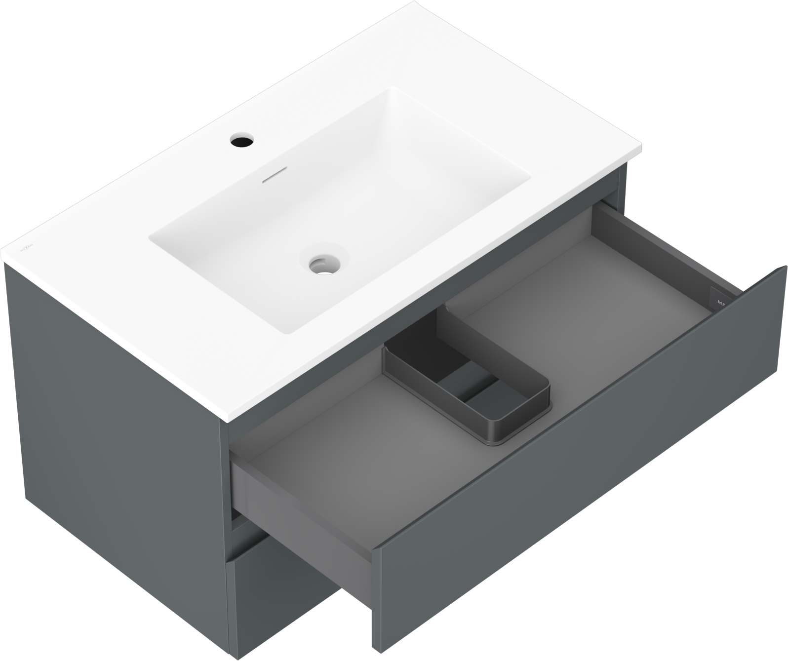 Η εγκοπή στο συρτάρι είναι σχεδιασμένη με τέτοιο τρόπο, ώστε να φιλοξενεί το σιφόνι, το οποίο είναι απαραίτητο στις εγκαταστάσεις νιπτήρων. Έτσι, το έπιπλο μπορεί να εγκατασταθεί πλήρως λειτουργικά, χωρίς την ανάγκη παραίτησης από χώρο στο συρτάρι υπέρ της εγκατάστασης.