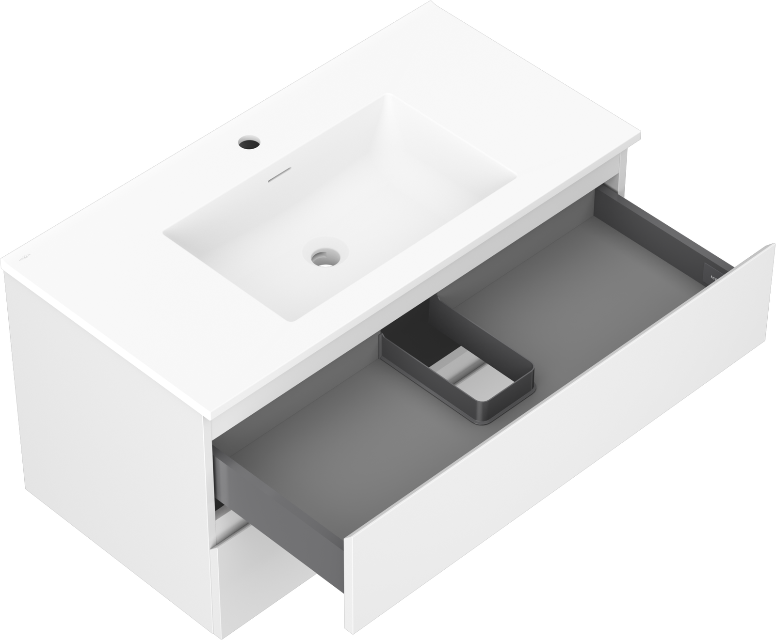 Η εγκοπή στο συρτάρι είναι σχεδιασμένη με τέτοιο τρόπο, ώστε να φιλοξενεί το σιφόνι, το οποίο είναι απαραίτητο στις εγκαταστάσεις νιπτήρων. Έτσι, το έπιπλο μπορεί να εγκατασταθεί πλήρως λειτουργικά, χωρίς την ανάγκη παραίτησης από χώρο στο συρτάρι υπέρ της εγκατάστασης.