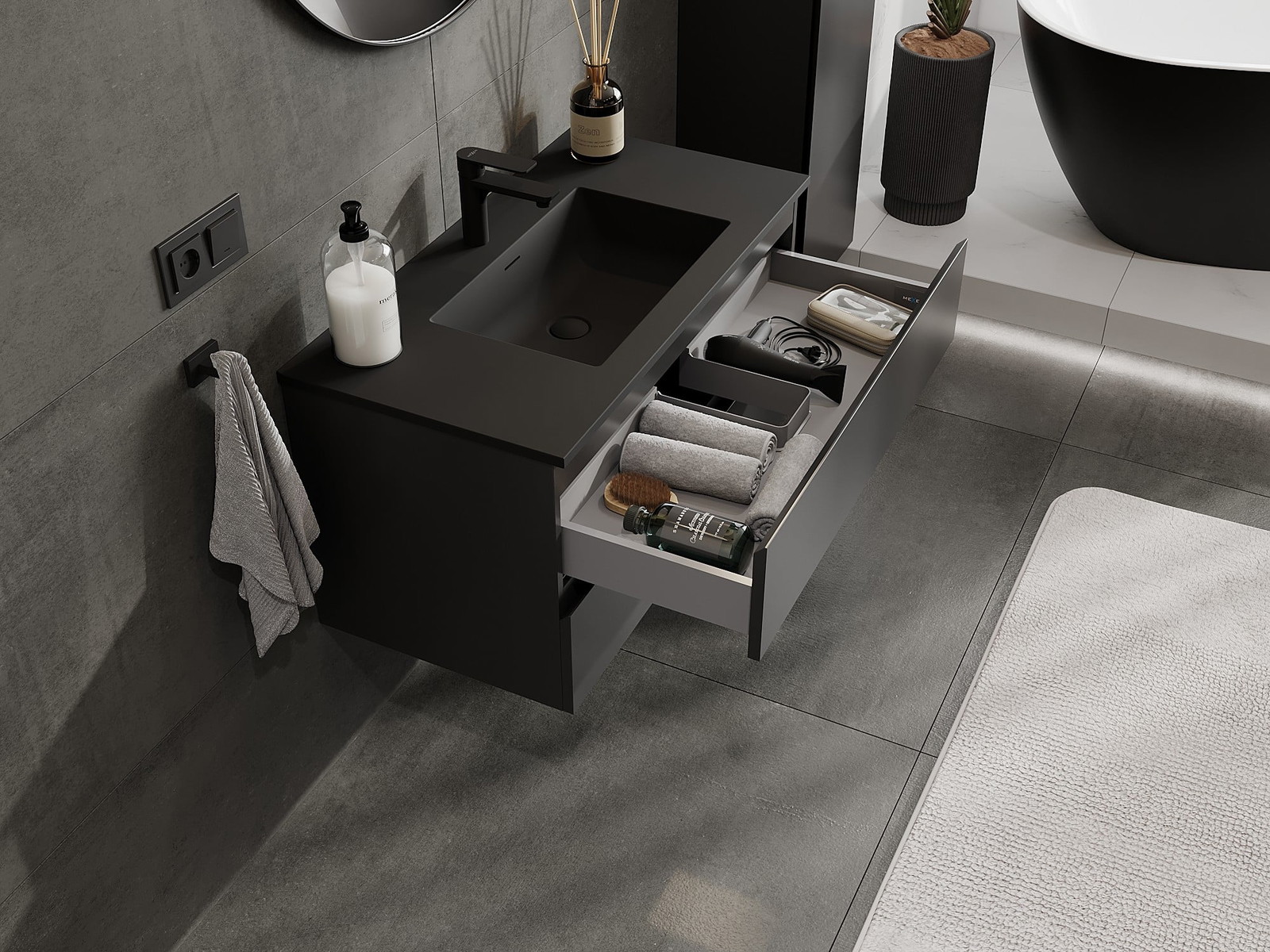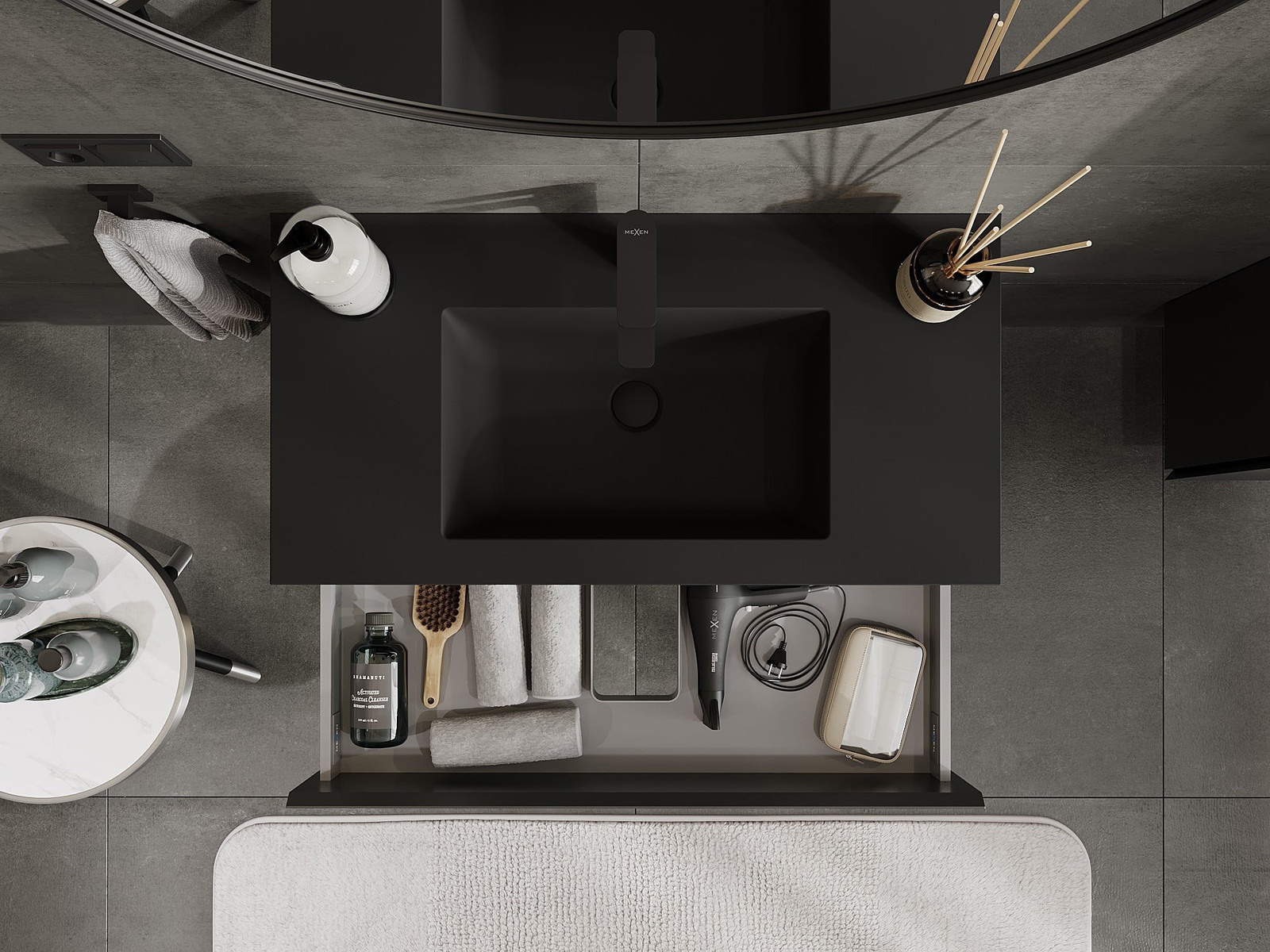 Mexen Orio ντουλάπι μπάνιου 90 cm με νιπτήρα Otis, 2 συρτάρια, μαύρο ματ