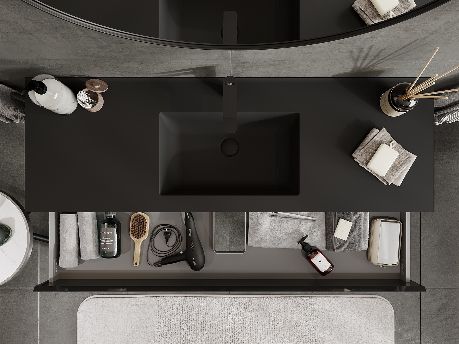 Mexen Orio ντουλάπι μπάνιου 140 cm με νιπτήρα Otis, 2 συρτάρια, μαύρο