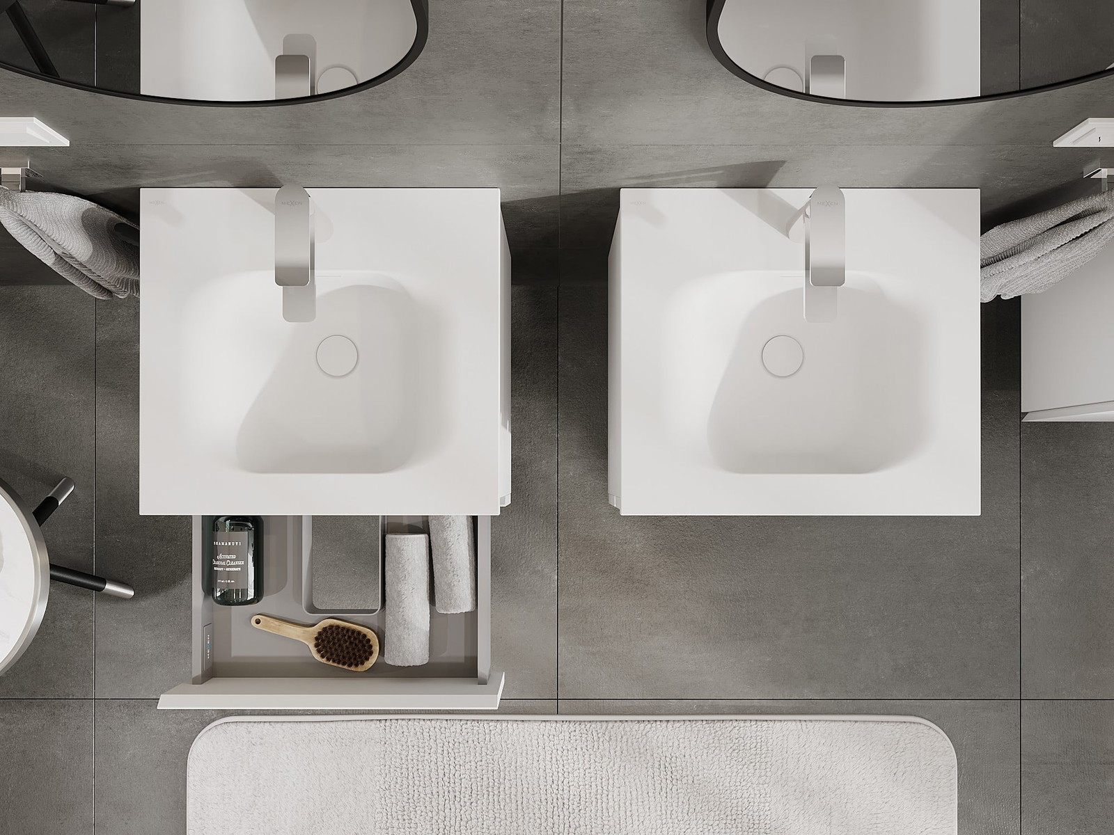 Η εγκοπή στο συρτάρι είναι σχεδιασμένη με τέτοιο τρόπο, ώστε να φιλοξενεί το σιφόνι, το οποίο είναι απαραίτητο στις εγκαταστάσεις νιπτήρων. Έτσι, το έπιπλο μπορεί να εγκατασταθεί πλήρως λειτουργικά, χωρίς την ανάγκη παραίτησης από χώρο στο συρτάρι υπέρ της εγκατάστασης.