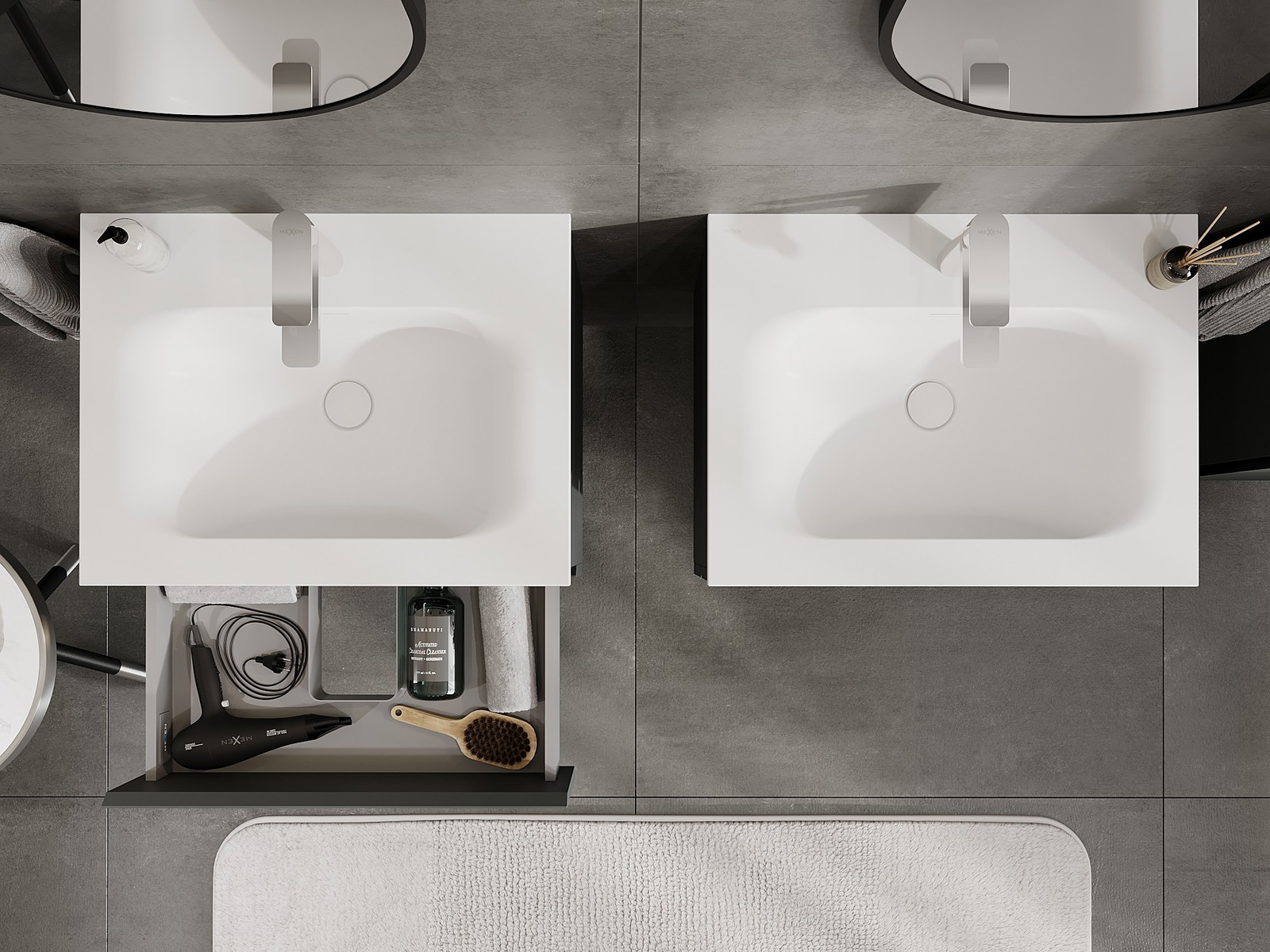 Τα αρθρωτά έπιπλα μπάνιου μας μπορούν να συνδυαστούν μεταξύ τους σε διάφορες χρωματικές διαμορφώσεις, επιτρέποντας πλήρη εξατομίκευση. Μπορείτε να επιλέξετε τόσο την εμφάνιση όσο και τις λειτουργίες των επιμέρους στοιχείων, ώστε να προσαρμόσετε τα έπιπλα στις δικές σας στιλιστικές και λειτουργικές προτιμήσεις.