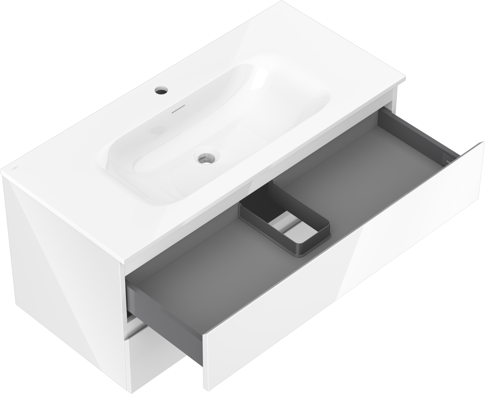 Mexen Orio ντουλάπι μπάνιου 100 cm με νιπτήρα Vela, 2 συρτάρια, λευκή γυαλιστερή