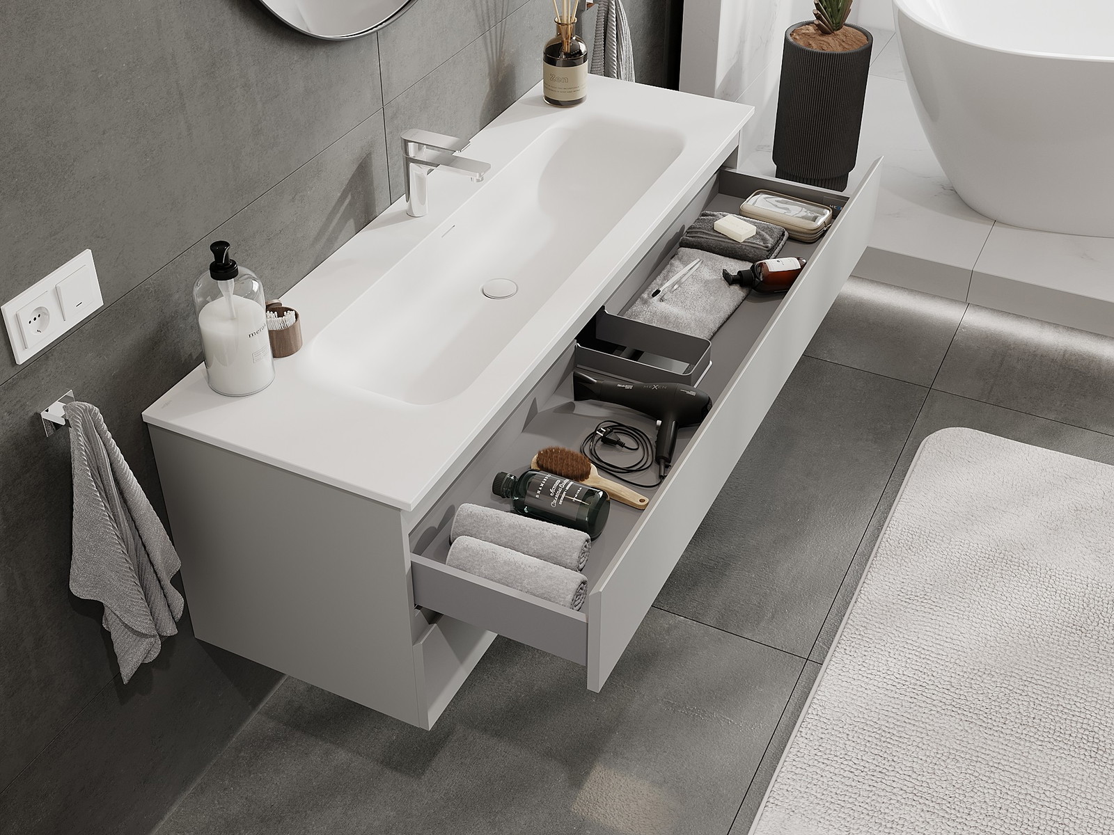 Τα αρθρωτά έπιπλα μπάνιου μας μπορούν να συνδυαστούν μεταξύ τους σε διάφορες χρωματικές διαμορφώσεις, επιτρέποντας πλήρη εξατομίκευση. Μπορείτε να επιλέξετε τόσο την εμφάνιση όσο και τις λειτουργίες των επιμέρους στοιχείων, ώστε να προσαρμόσετε τα έπιπλα στις δικές σας στιλιστικές και λειτουργικές προτιμήσεις.