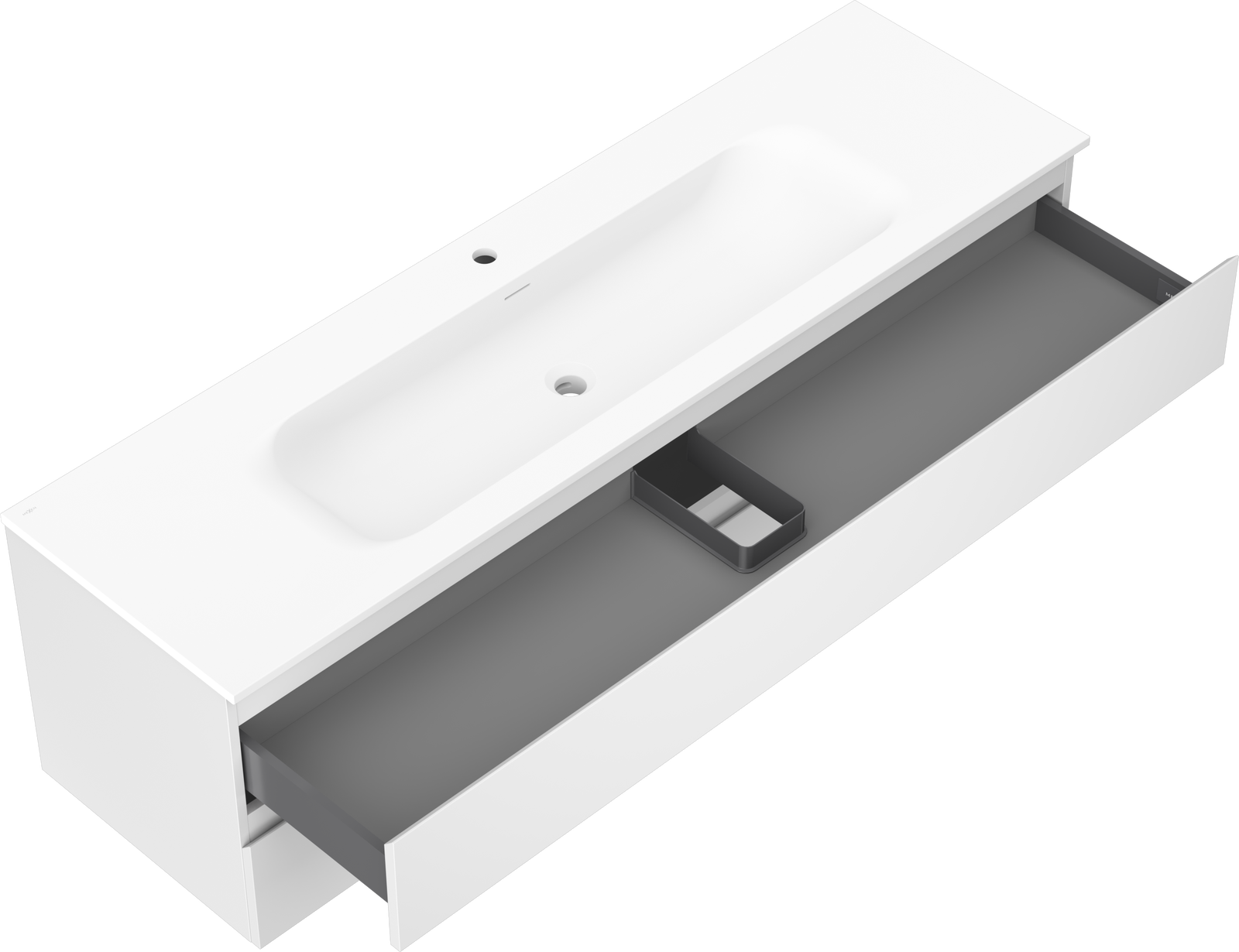 Η εγκοπή στο συρτάρι είναι σχεδιασμένη με τέτοιο τρόπο, ώστε να φιλοξενεί το σιφόνι, το οποίο είναι απαραίτητο στις εγκαταστάσεις νιπτήρων. Έτσι, το έπιπλο μπορεί να εγκατασταθεί πλήρως λειτουργικά, χωρίς την ανάγκη παραίτησης από χώρο στο συρτάρι υπέρ της εγκατάστασης.