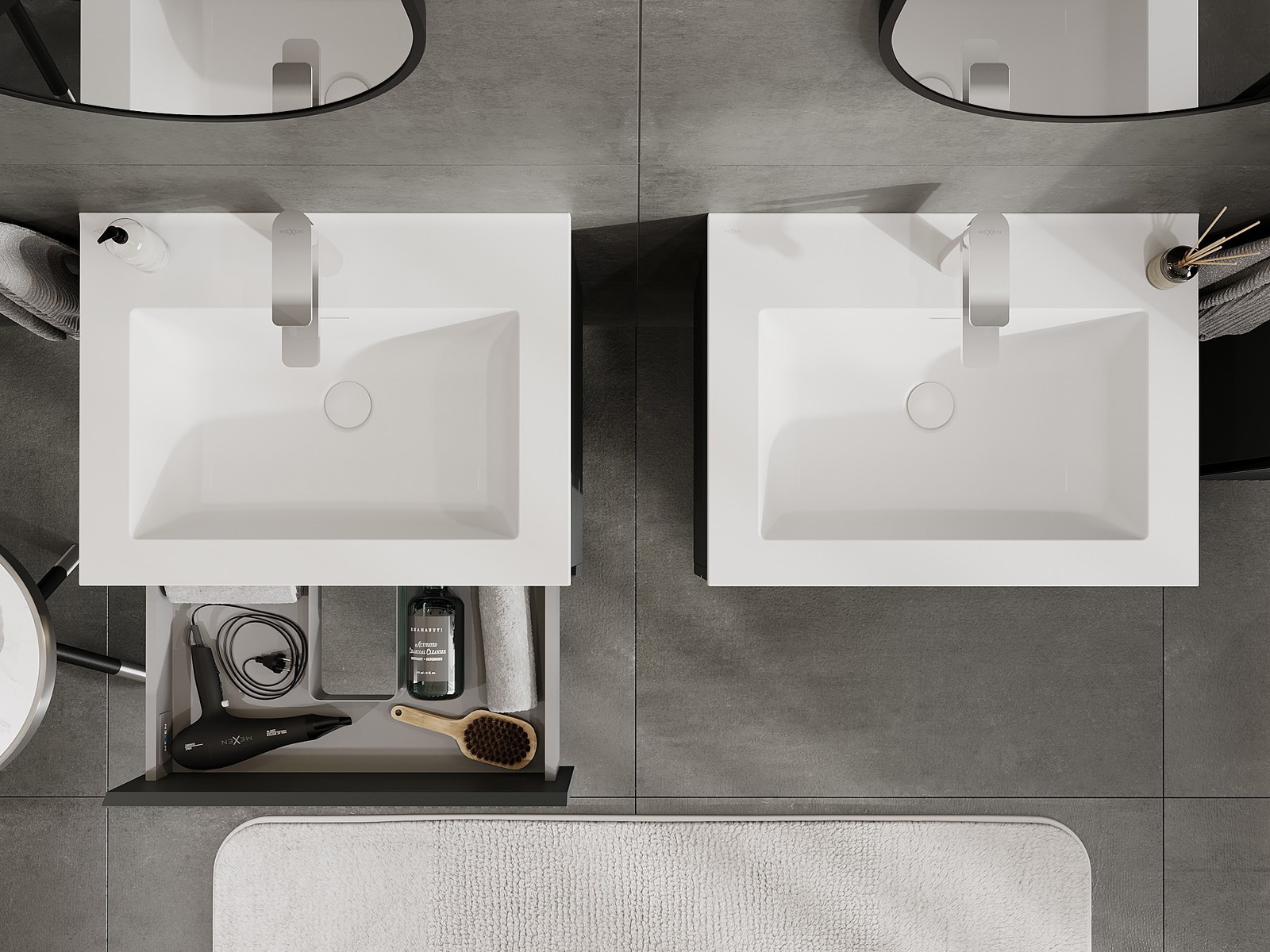 Mexen Rivel ντουλάπι μπάνιου 60 cm με νιπτήρα Otis, 2 συρτάρια, αυλακωτό, ματ