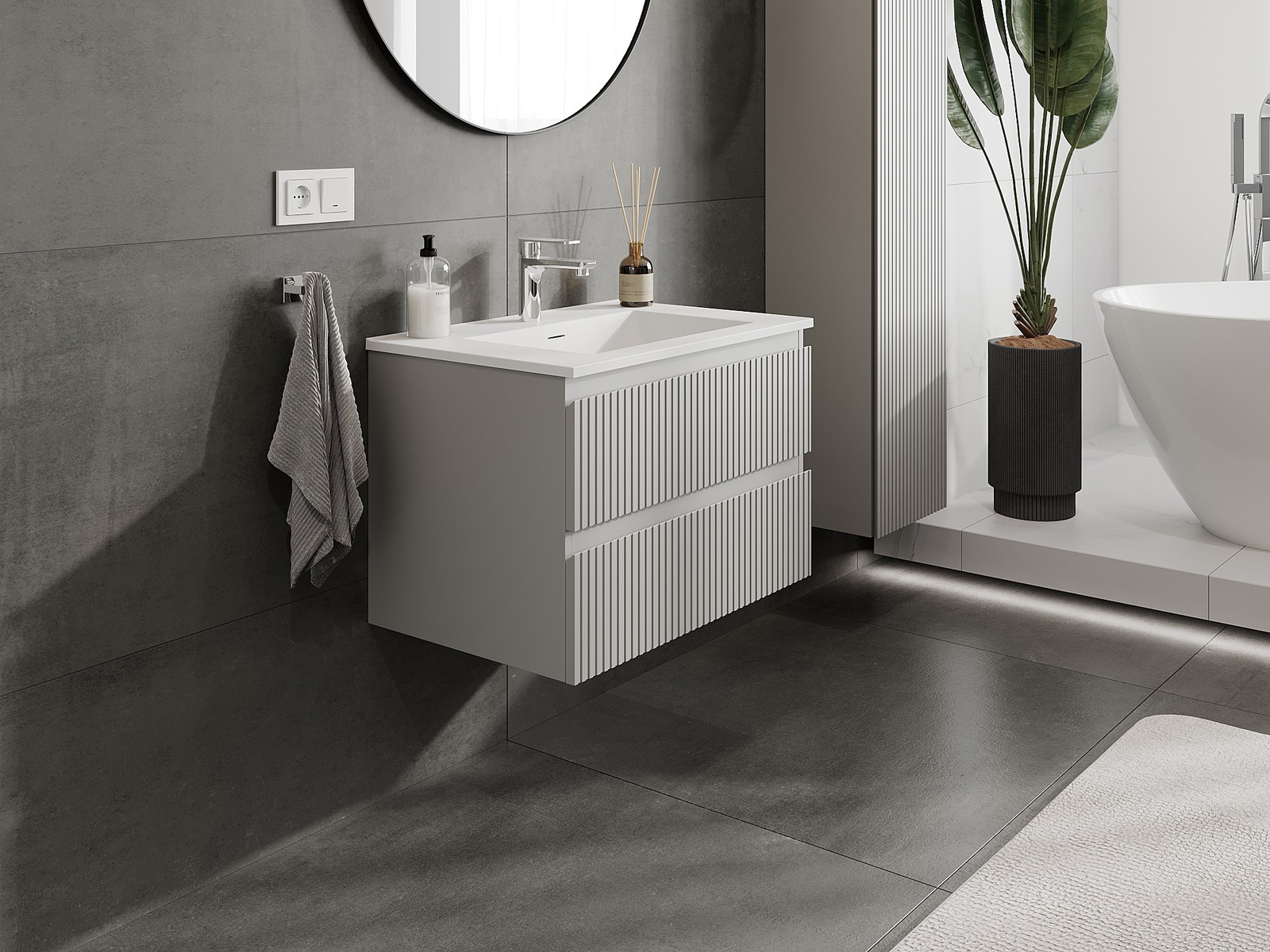 Mexen Rivel ντουλάπι μπάνιου 70 εκ. με νιπτήρα Otis, 2 συρτάρια, αυλακωτό, γκρι
