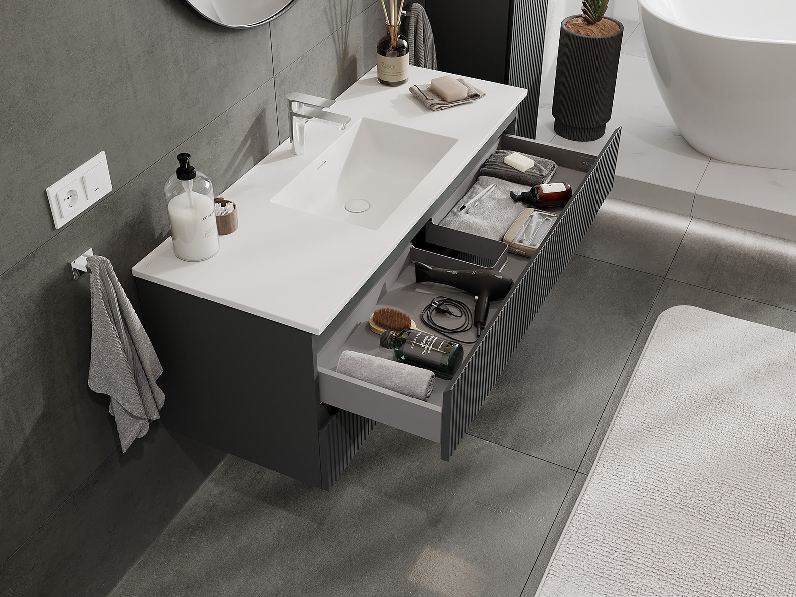 Mexen Rivel ντουλάπι μπάνιου 120 cm με νιπτήρα Otis, 2 συρτάρια, ριγωτό, γραφίτης
