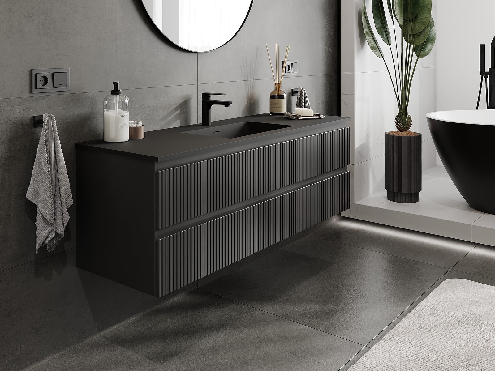 Mexen Rivel Ντουλάπι μπάνιου 140 cm με νιπτήρα Otis, 2 συρτάρια, αυλακωτό, μαύρο