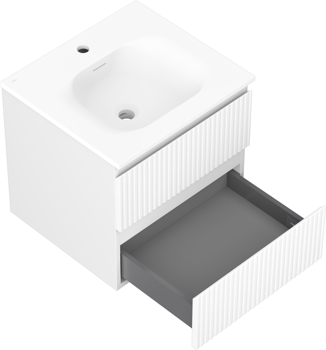 Mexen Rivel ντουλάπι μπάνιου 50 cm με νιπτήρα Vela, 2 συρτάρια, αυλακωτό, λευκό