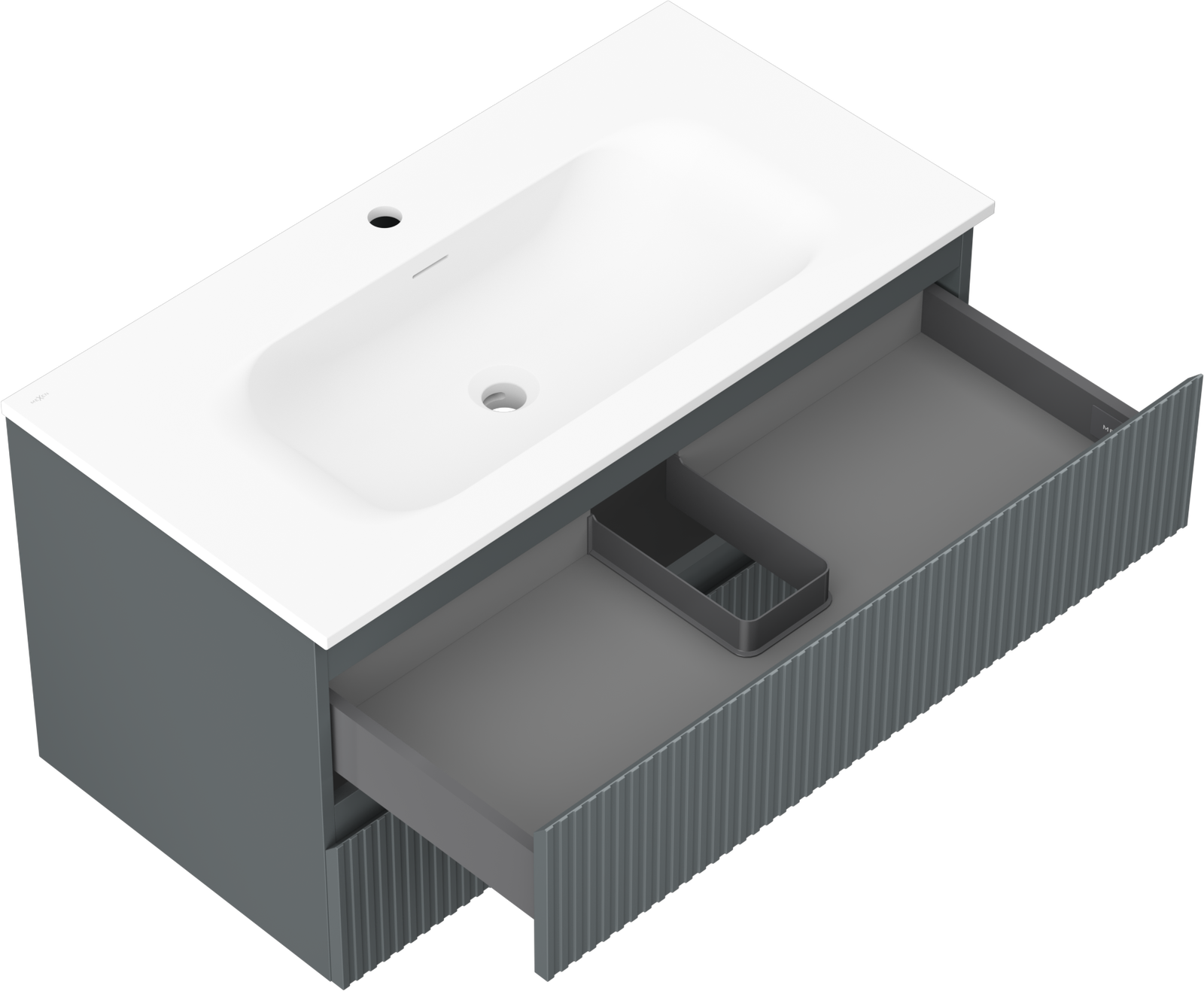 Mexen Rivel ντουλάπι μπάνιου 90 cm με νιπτήρα Vela, 2 συρτάρια, αυλακωμένο, ματ