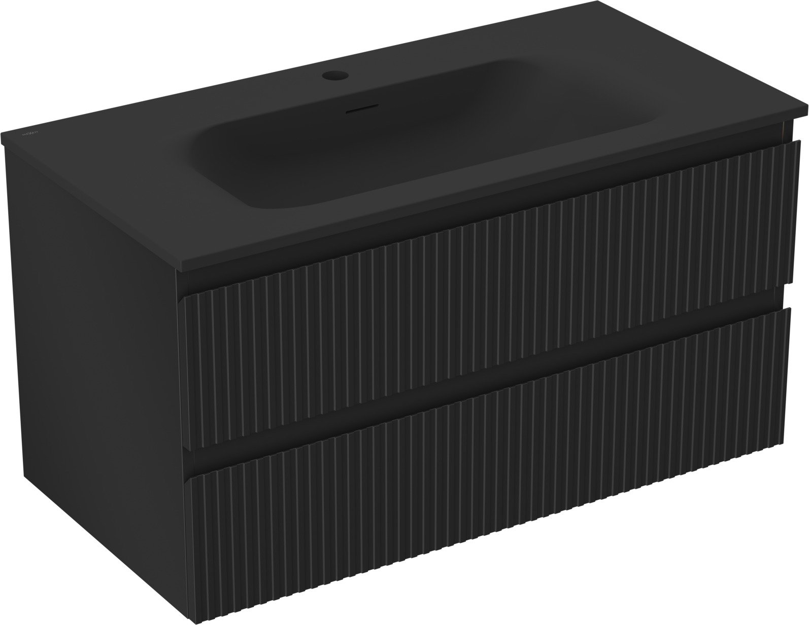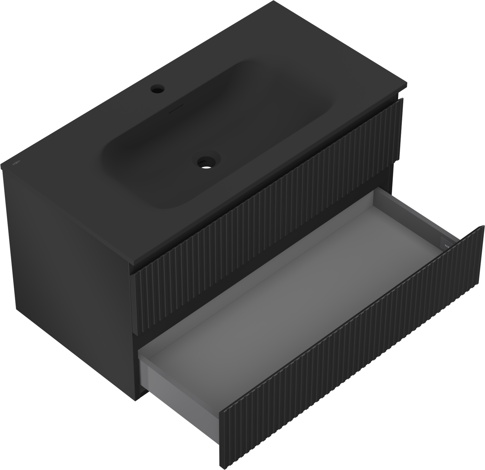 Mexen Rivel ντουλάπι μπάνιου 90 cm με νιπτήρα Vela, 2 συρτάρια, αυλακωμένο, μαύρο