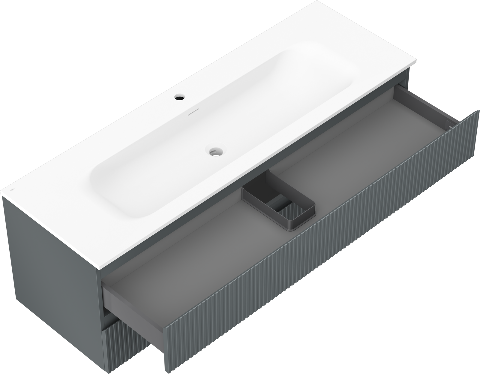 Η εγκοπή στο συρτάρι είναι σχεδιασμένη με τέτοιο τρόπο, ώστε να φιλοξενεί το σιφόνι, το οποίο είναι απαραίτητο στις εγκαταστάσεις νιπτήρων. Έτσι, το έπιπλο μπορεί να εγκατασταθεί πλήρως λειτουργικά, χωρίς την ανάγκη παραίτησης από χώρο στο συρτάρι υπέρ της εγκατάστασης.