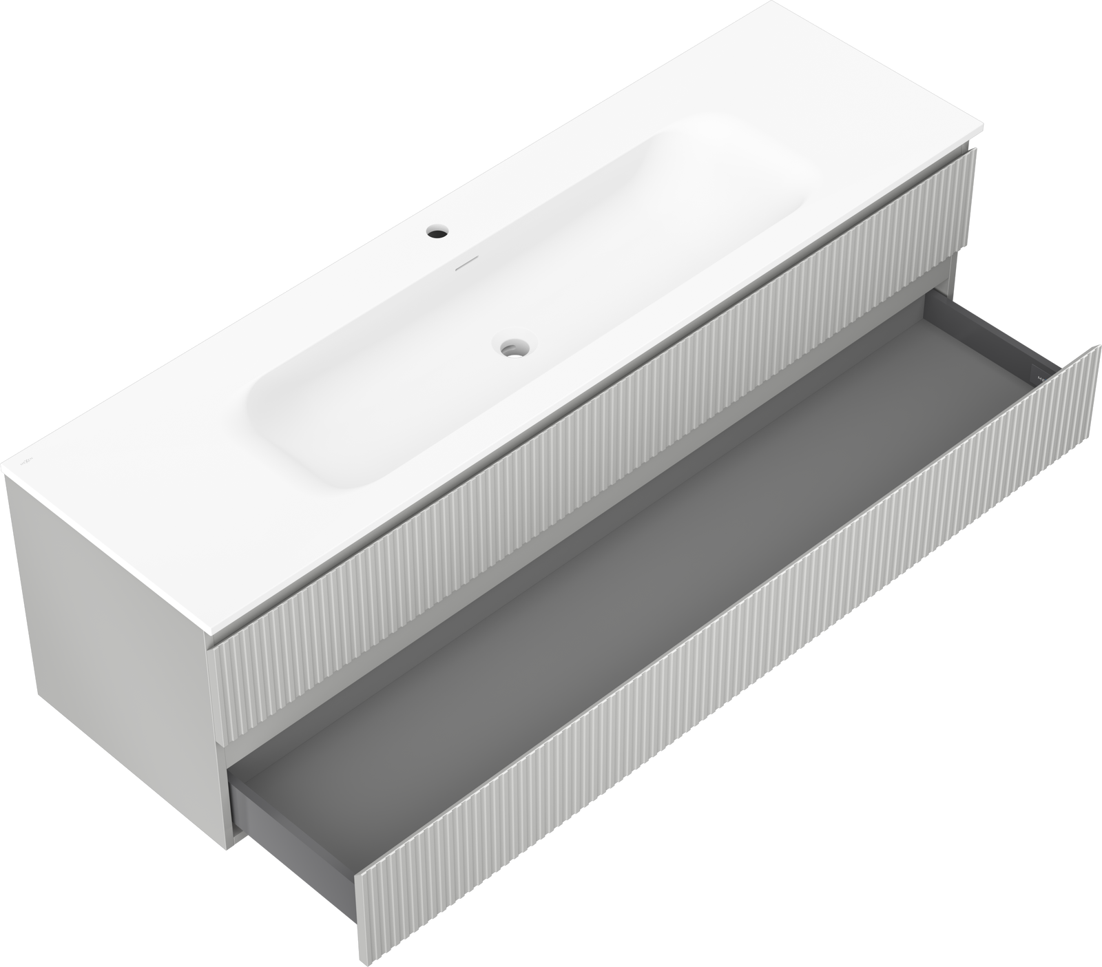 Η εγκοπή στο συρτάρι είναι σχεδιασμένη με τέτοιο τρόπο, ώστε να φιλοξενεί το σιφόνι, το οποίο είναι απαραίτητο στις εγκαταστάσεις νιπτήρων. Έτσι, το έπιπλο μπορεί να εγκατασταθεί πλήρως λειτουργικά, χωρίς την ανάγκη παραίτησης από χώρο στο συρτάρι υπέρ της εγκατάστασης.