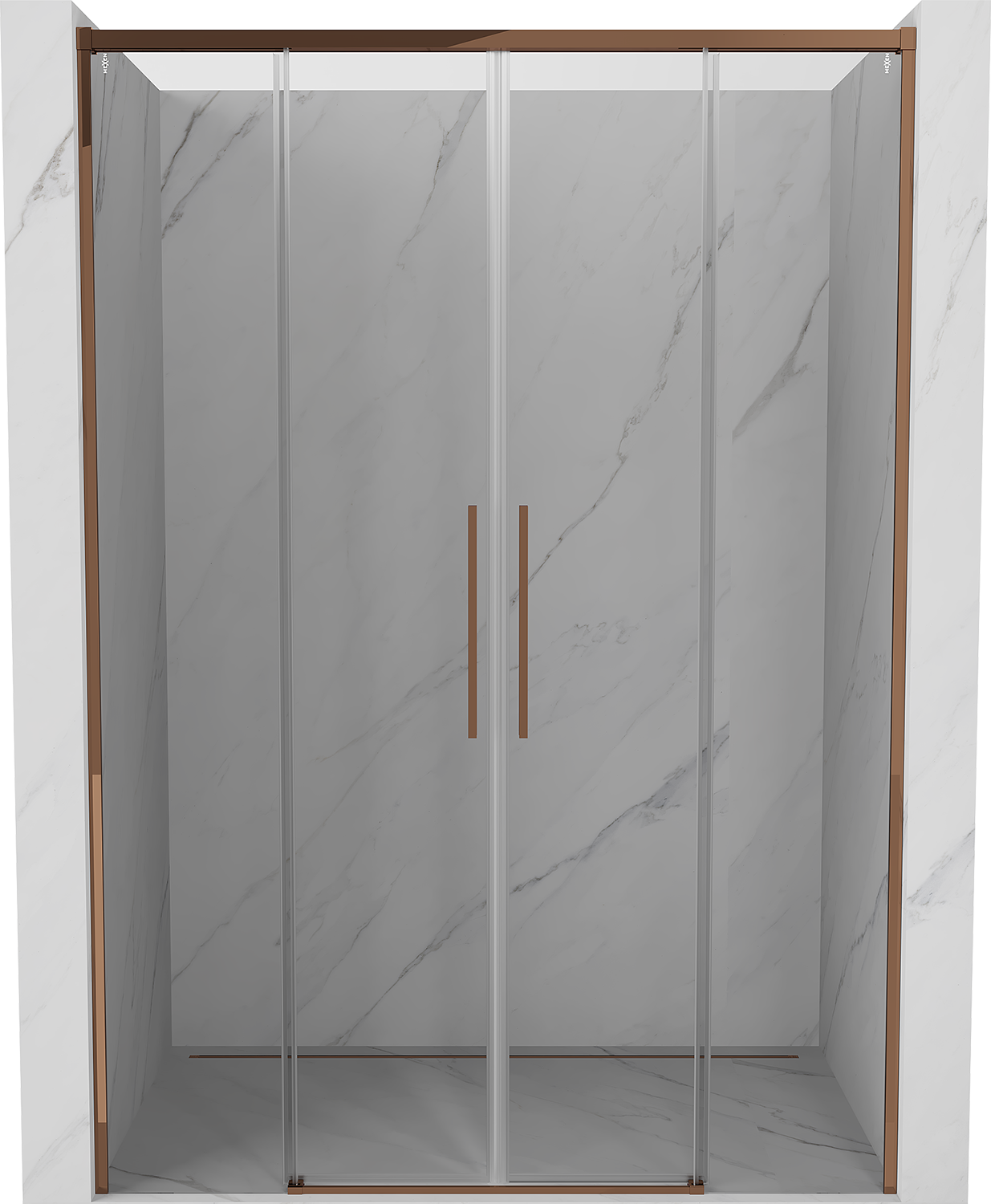 Mexen Rox Ζεύγος συρόμενες πόρτες ντους 160 cm, διάφανες, ροζ χρυσός