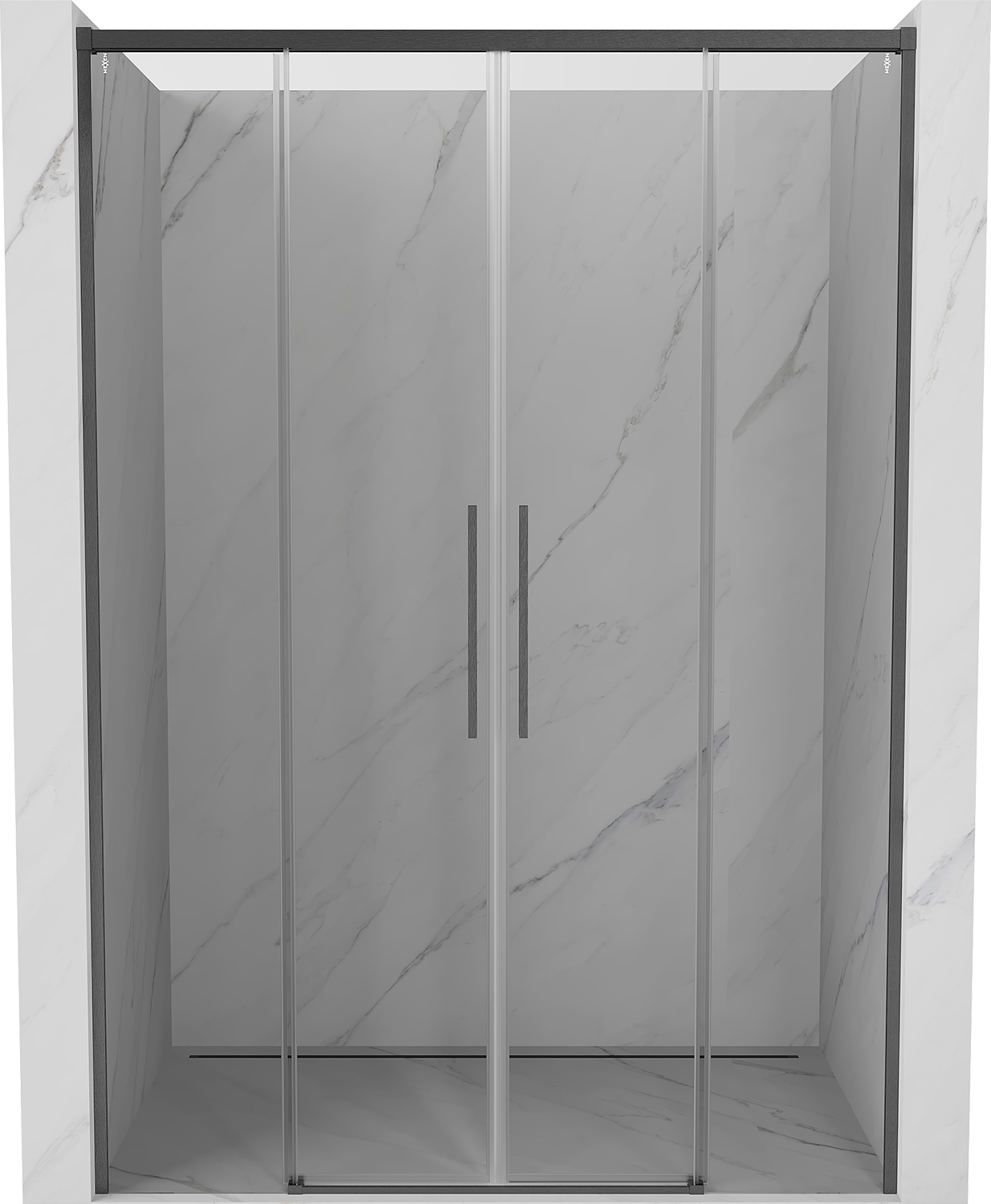 Mexen Rox Δίφυλλη συρόμενη πόρτα ντους 150 εκ., διαφανής, γκρι όπλου