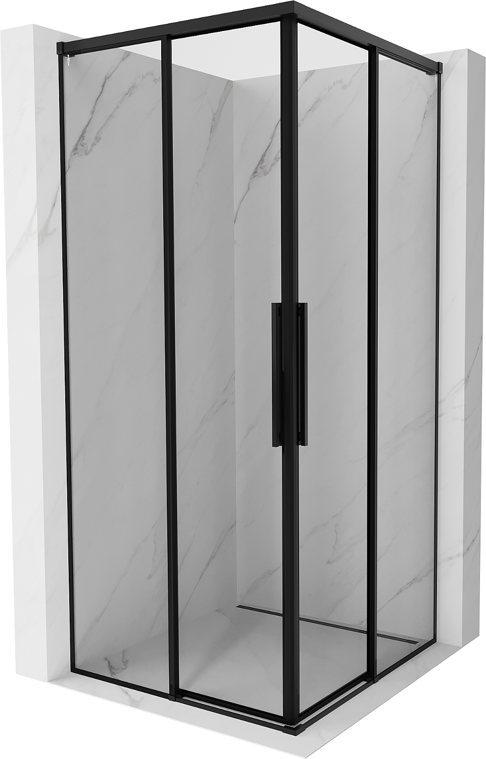 Mexen Rox Διπλή συρόμενη καμπίνα ντους 120 x 120 cm, μαύρο πλαίσιο, μαύρο
