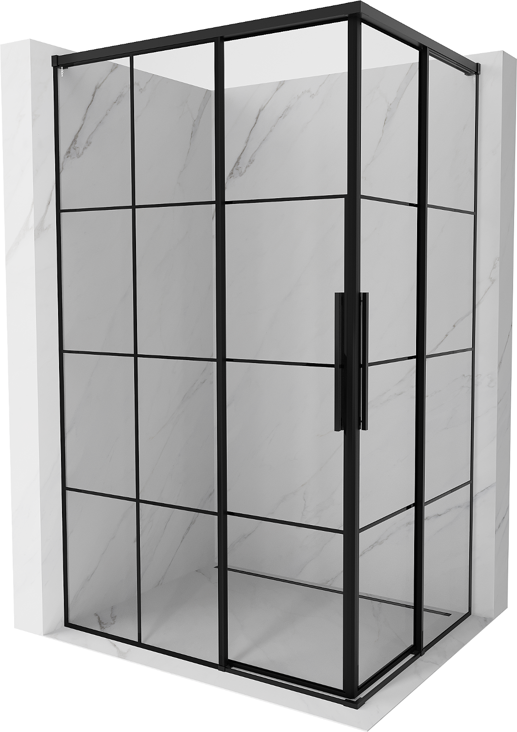 Mexen Rox Διπλή συρόμενη καμπίνα ντους 110 x 75 cm, μαύρο πλέγμα, μαύρη