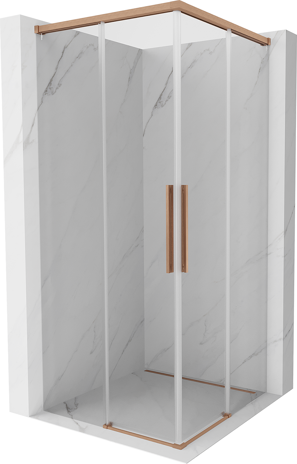 Mexen Rox Ντουζιέρα Duo συρόμενη 120 x 120 εκ., διάφανη, βουρτσισμένος χαλκός