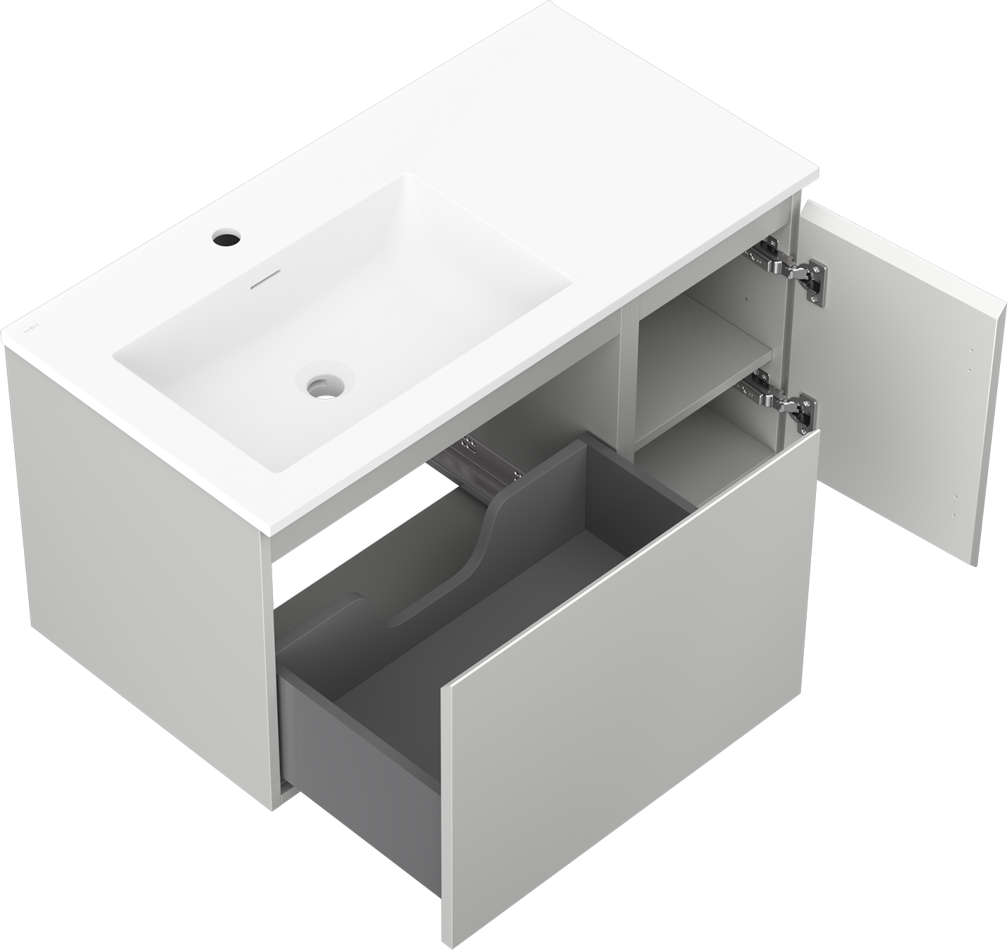 Mexen Orio ντουλάπι μπάνιου 90 cm με νιπτήρα Otis αριστερό, 1S, 1D, γκρι ματ/λευκό