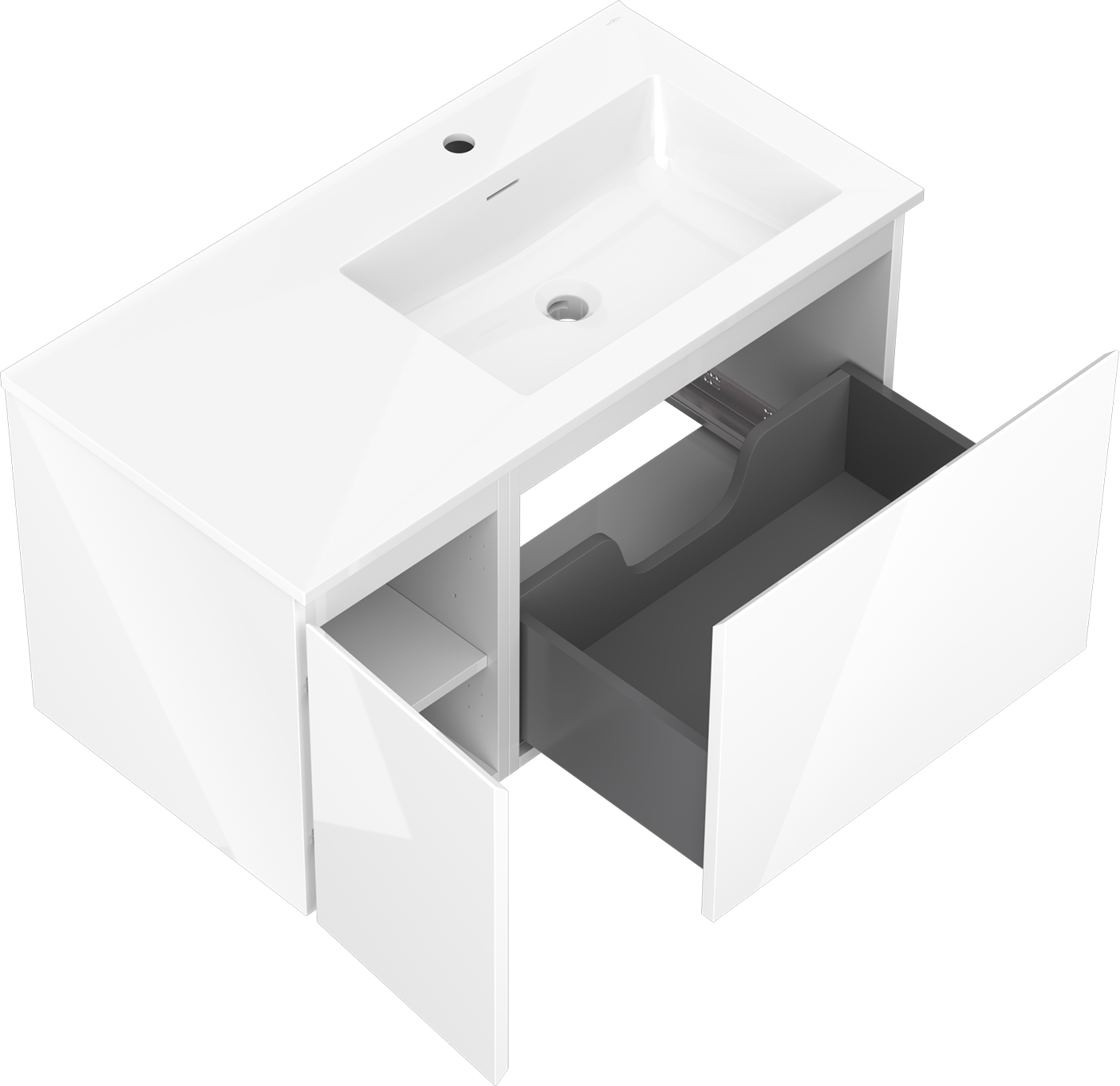 Η εγκοπή στο συρτάρι είναι σχεδιασμένη με τέτοιο τρόπο, ώστε να φιλοξενεί το σιφόνι, το οποίο είναι απαραίτητο στις εγκαταστάσεις νιπτήρων. Έτσι, το έπιπλο μπορεί να εγκατασταθεί πλήρως λειτουργικά, χωρίς την ανάγκη παραίτησης από χώρο στο συρτάρι υπέρ της εγκατάστασης.